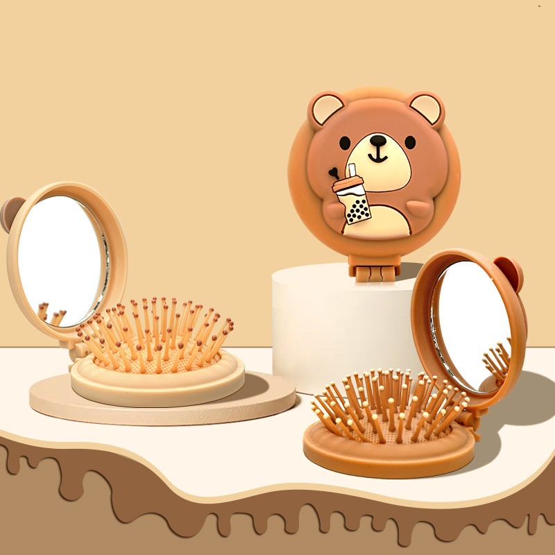 Расческа складная с зеркалом "Мишка с Бабл ти" в ассортименте 1шт