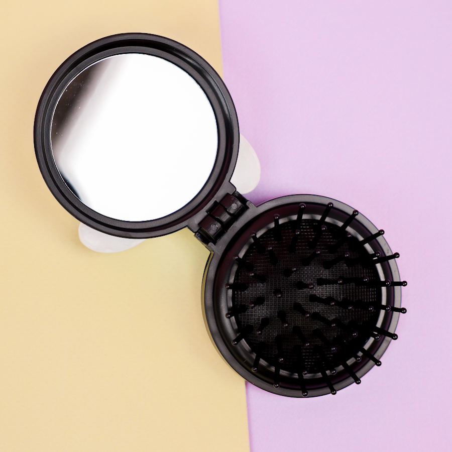 Расческа складная с зеркалом "Щенок" черный, 7х7,5см