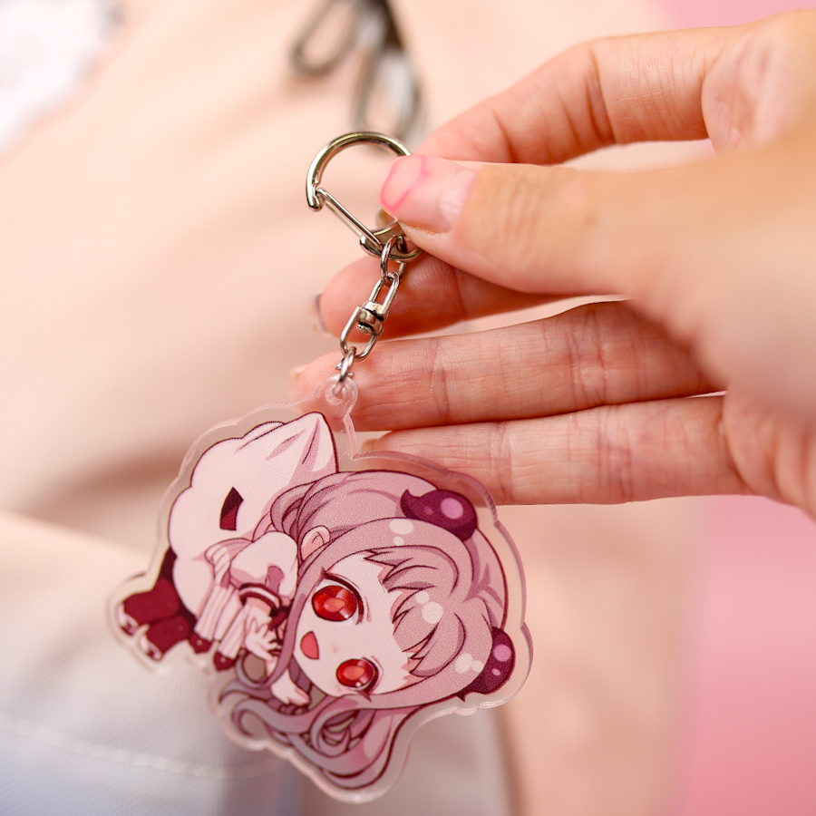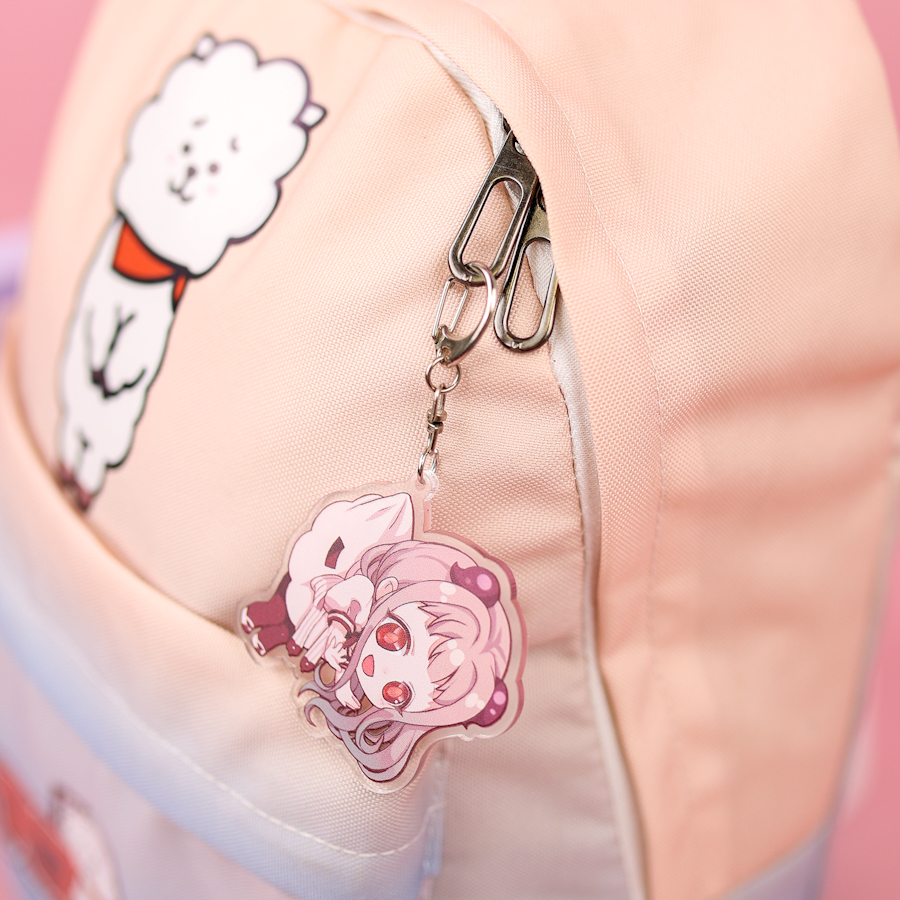Большую популярность набрали брелоки для мобильного телефона. Они небольшого размера и надежно прикрепляются к гаджету. В качестве крепления используется толстая леска или крепкий шнурок. Украшающим элементом служат маленькие мягкие игрушки: единорожки, смайлики, котошарики, котята, мультяшные персонажи. Мягкие брелоки для рюкзаков и сумок имеют чуть больший размер. Ими также можно украсить косметичку или клатч. Фиксируются с помощью кольца или стальной цепочки. Некоторые модели оснащены прочными стальными карабинами.