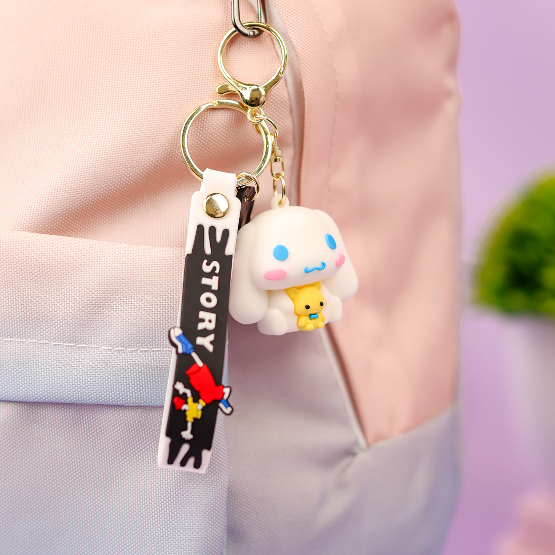Большую популярность набрали брелоки для мобильного телефона. Они небольшого размера и надежно прикрепляются к гаджету. В качестве крепления используется толстая леска или крепкий шнурок. Украшающим элементом служат маленькие мягкие игрушки: единорожки, смайлики, котошарики, котята, мультяшные персонажи. Мягкие брелоки для рюкзаков и сумок имеют чуть больший размер. Ими также можно украсить косметичку или клатч. Фиксируются с помощью кольца или стальной цепочки. Некоторые модели оснащены прочными стальными карабинами.