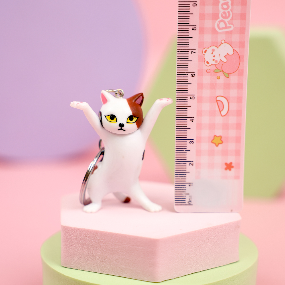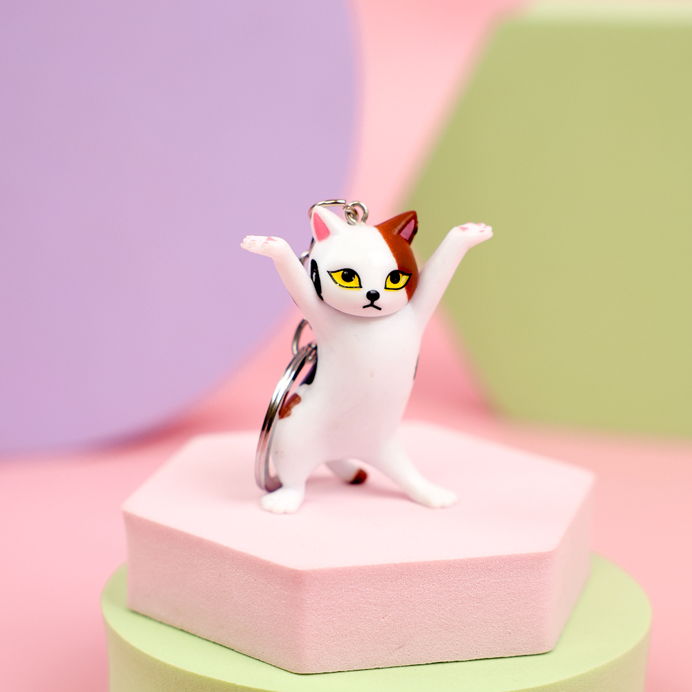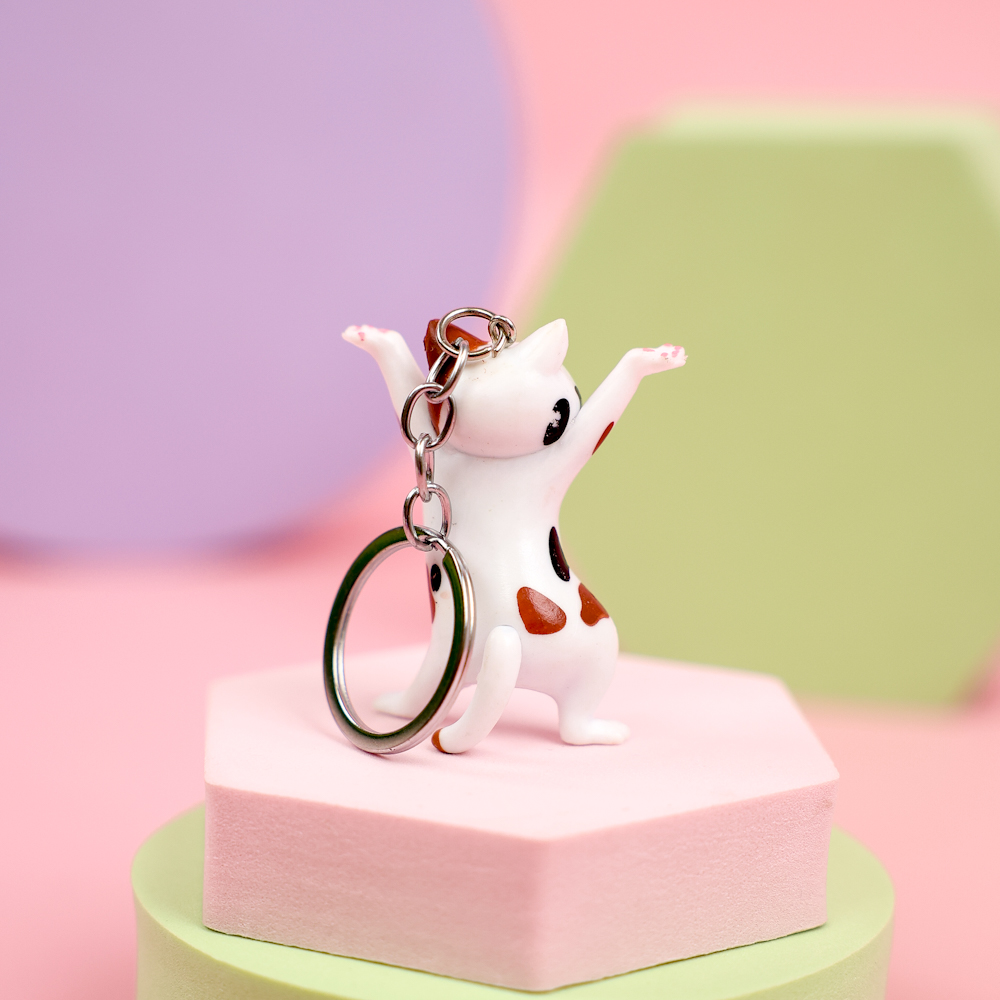 Брелок "Позирующий котик", белый с пятнышками