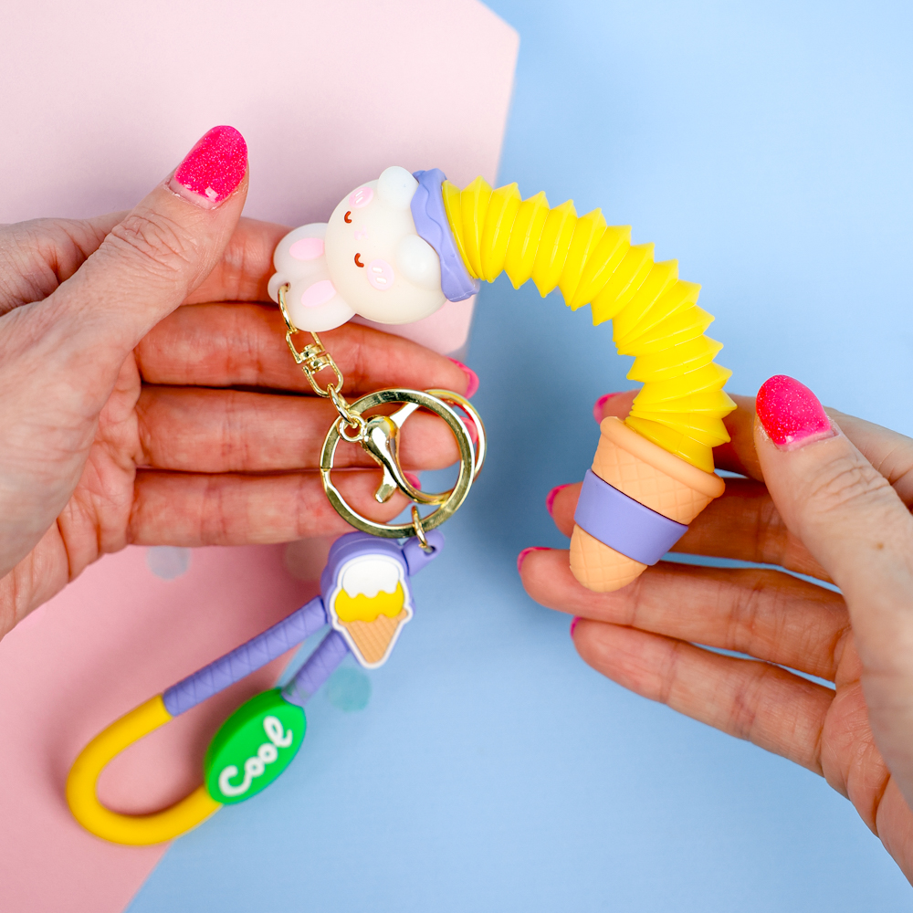 Большую популярность набрали брелоки для мобильного телефона. Они небольшого размера и надежно прикрепляются к гаджету. В качестве крепления используется толстая леска или крепкий шнурок. Украшающим элементом служат маленькие мягкие игрушки: единорожки, смайлики, котошарики, котята, мультяшные персонажи. Мягкие брелоки для рюкзаков и сумок имеют чуть больший размер. Ими также можно украсить косметичку или клатч. Фиксируются с помощью кольца или стальной цепочки. Некоторые модели оснащены прочными стальными карабинами.