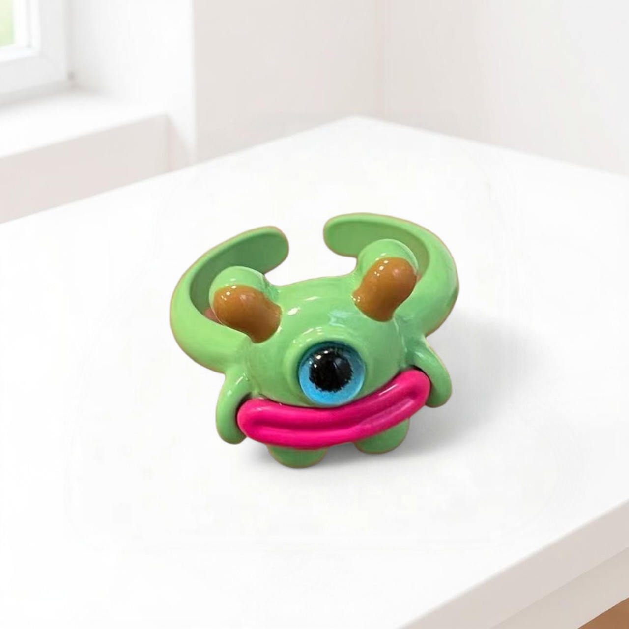 Кольцо "Монстрик" с губами и ножками, зеленый