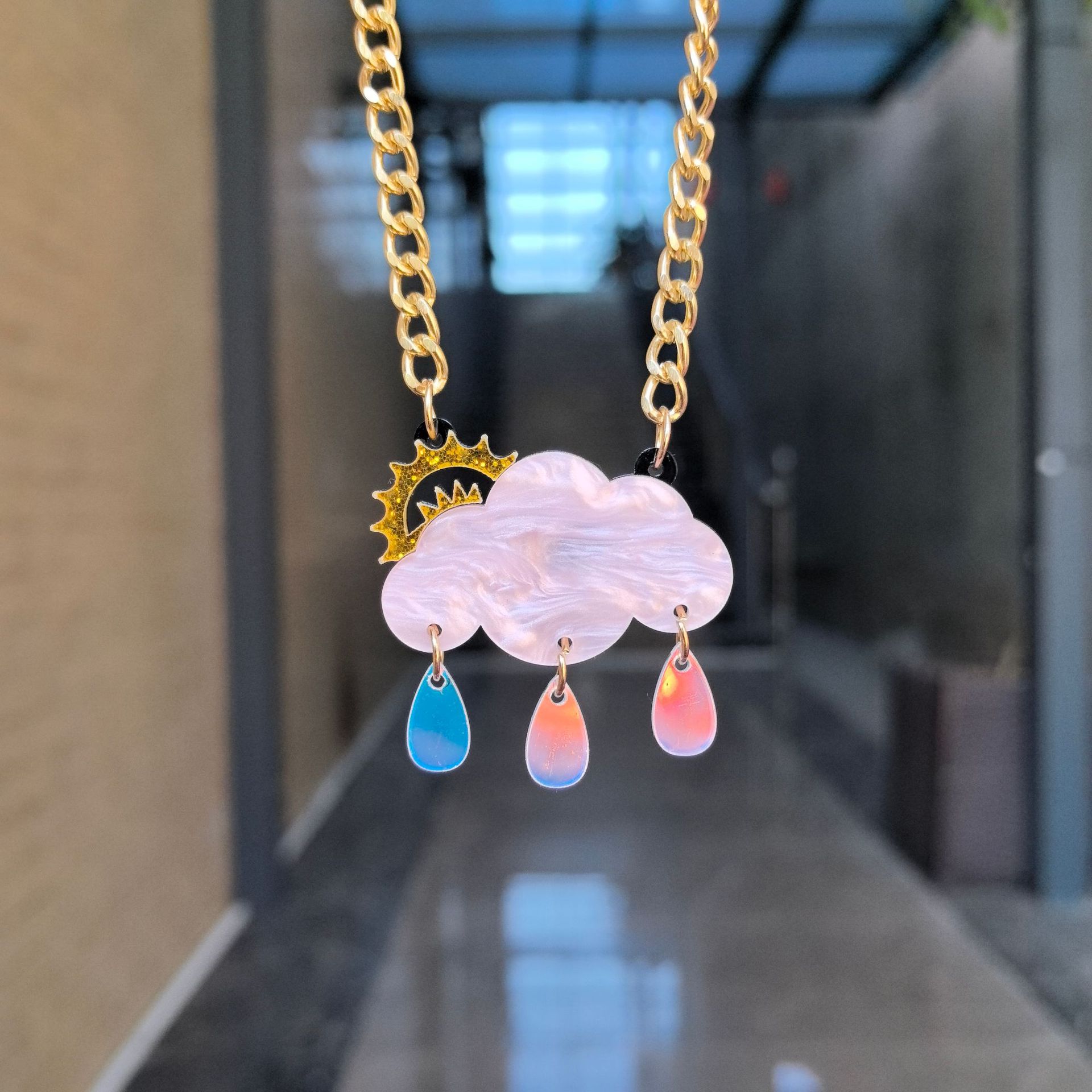 Кулон на цепочке "Облако и капли" перламутровый