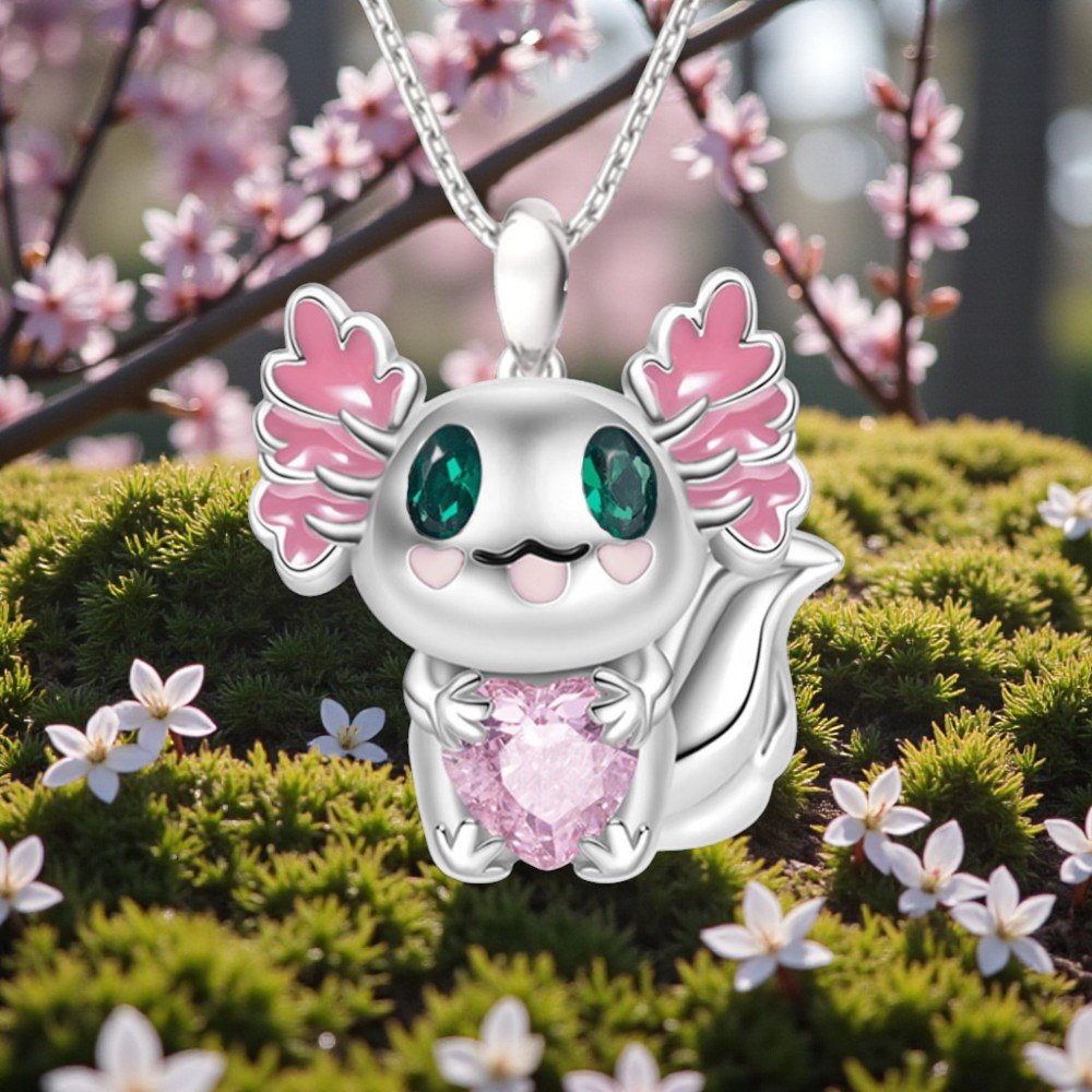 Подвеска на цепочке "Аксолотль с сердечком" серебряный