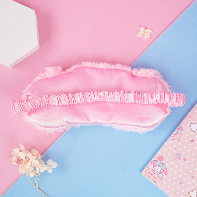 Маски шьют из качественного светонепроницаемого текстиля. В качестве украшения используется искусственный мех, бантики, принты мультяшных персонажей. Изнаночная сторона выполнена из приятного на ощупь материала. Это может быть искусственный или натуральный шелк, мягкий хлопок. Крепкая тесемка надежно удерживает аксессуар на лице, чтобы предотвратить сползание. Вместо тесемки используют также широкую резинку.