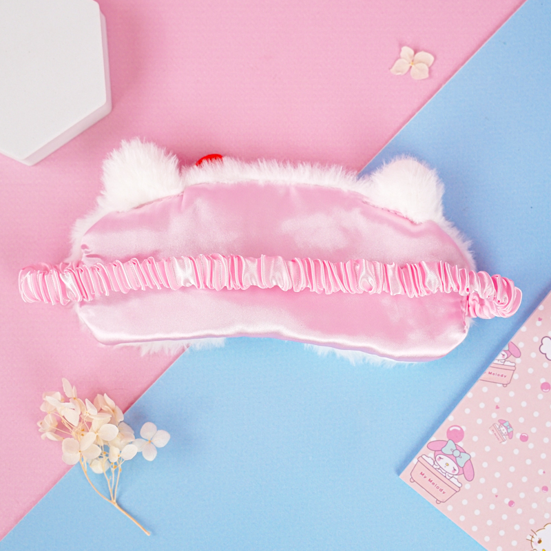 Маски шьют из качественного светонепроницаемого текстиля. В качестве украшения используется искусственный мех, бантики, принты мультяшных персонажей. Изнаночная сторона выполнена из приятного на ощупь материала. Это может быть искусственный или натуральный шелк, мягкий хлопок. Крепкая тесемка надежно удерживает аксессуар на лице, чтобы предотвратить сползание. Вместо тесемки используют также широкую резинку.