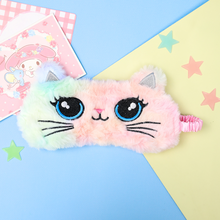 Маски шьют из качественного светонепроницаемого текстиля. В качестве украшения используется искусственный мех, бантики, принты мультяшных персонажей. Изнаночная сторона выполнена из приятного на ощупь материала. Это может быть искусственный или натуральный шелк, мягкий хлопок. Крепкая тесемка надежно удерживает аксессуар на лице, чтобы предотвратить сползание. Вместо тесемки используют также широкую резинку.