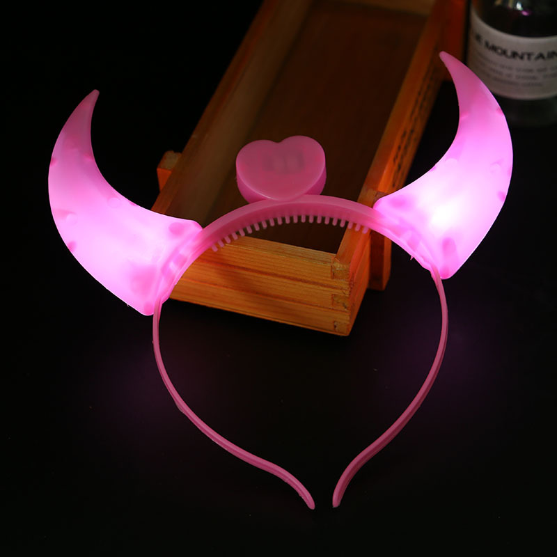Ободок "Рожки и сердце" с подсветкой, розовый