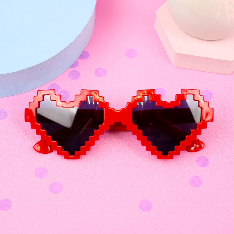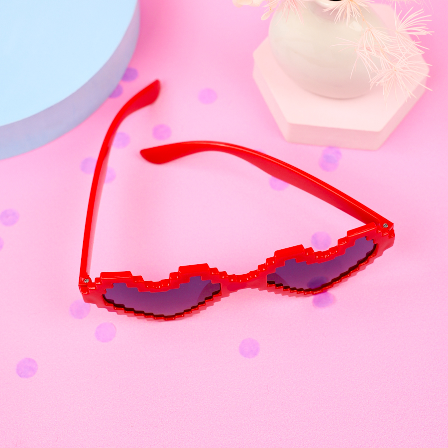 Добавьте ярких эмоций в любую вечеринку, фотосессию или праздник с очками "Сердце" в оригинальном пиксельном дизайне! Эти ярко-красные очки — не просто аксессуар, а настоящий акцент вашего образа.