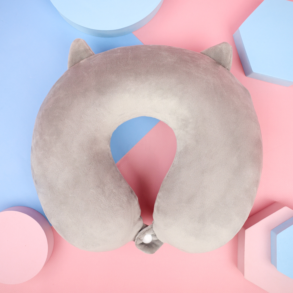 Подушка под шею с капюшоном может выполнять роль маски для сна. Привлекают внимание интересные дизайнерские решения: изделия в виде черного кота, совы, кролика, различных фруктов.
