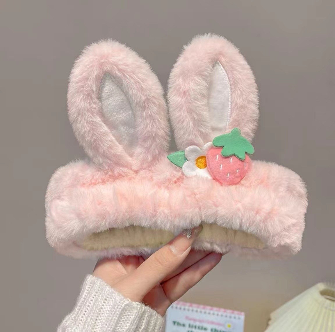 Повязка для волос "Заячьи уши", клубничка, розовый