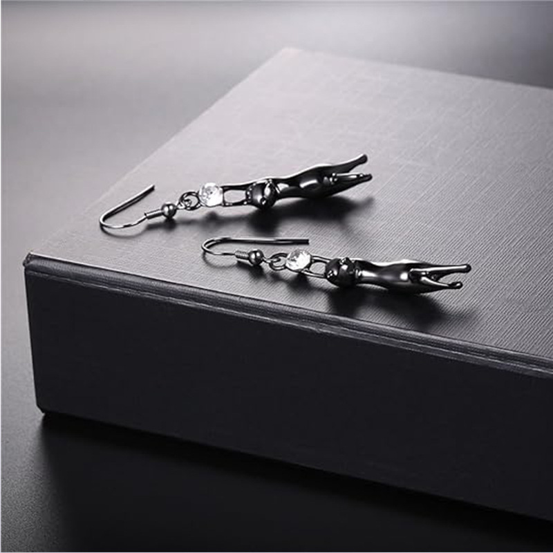 Серьги "Кот с кристаллом" черный