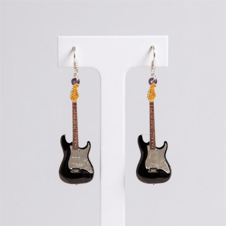 Серьги "Гитара" черно-белый