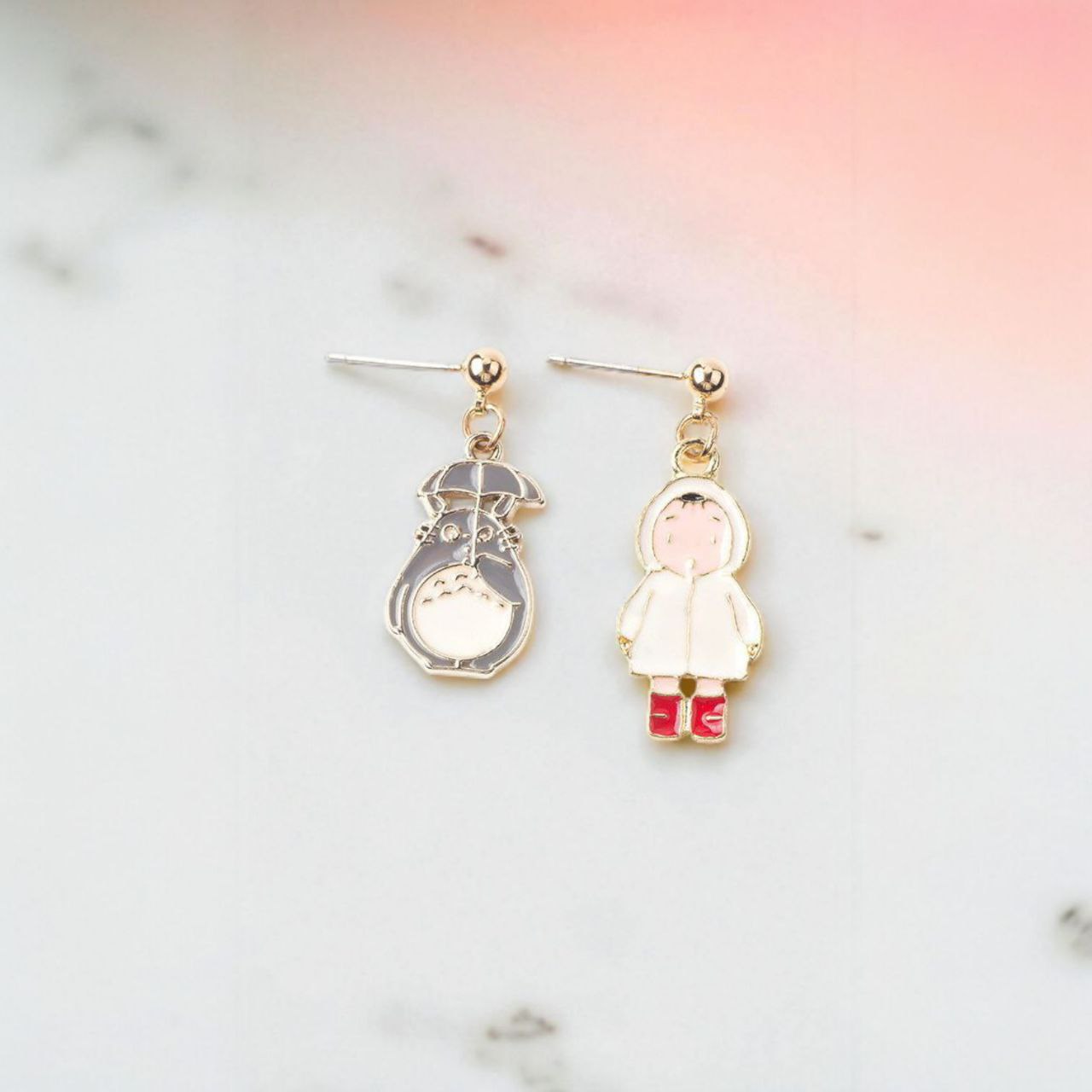 Серьги-гвоздики "Тоторо и Мэй" бело-серый