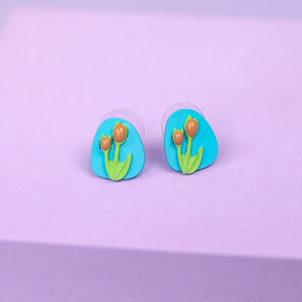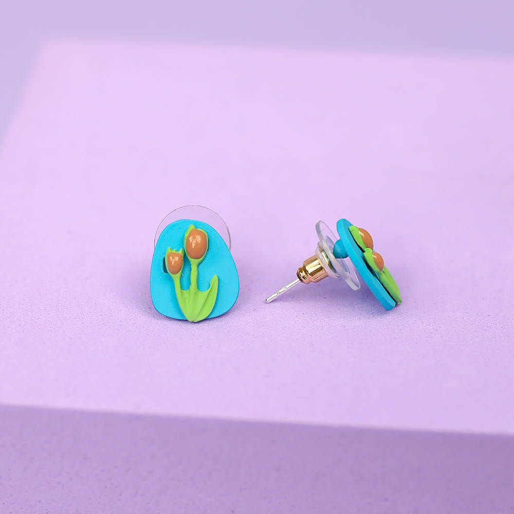 Серьги-гвоздики "Oil Painting" голубой