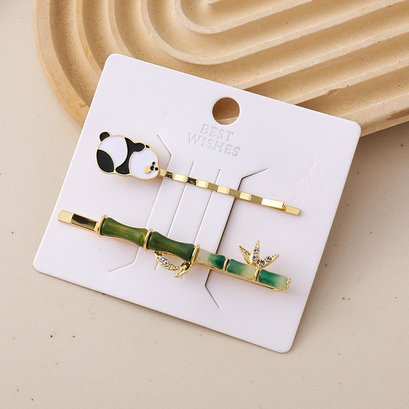 Набор заколка и невидимка "Лежащая панда и бамбук" золотой, 2шт.