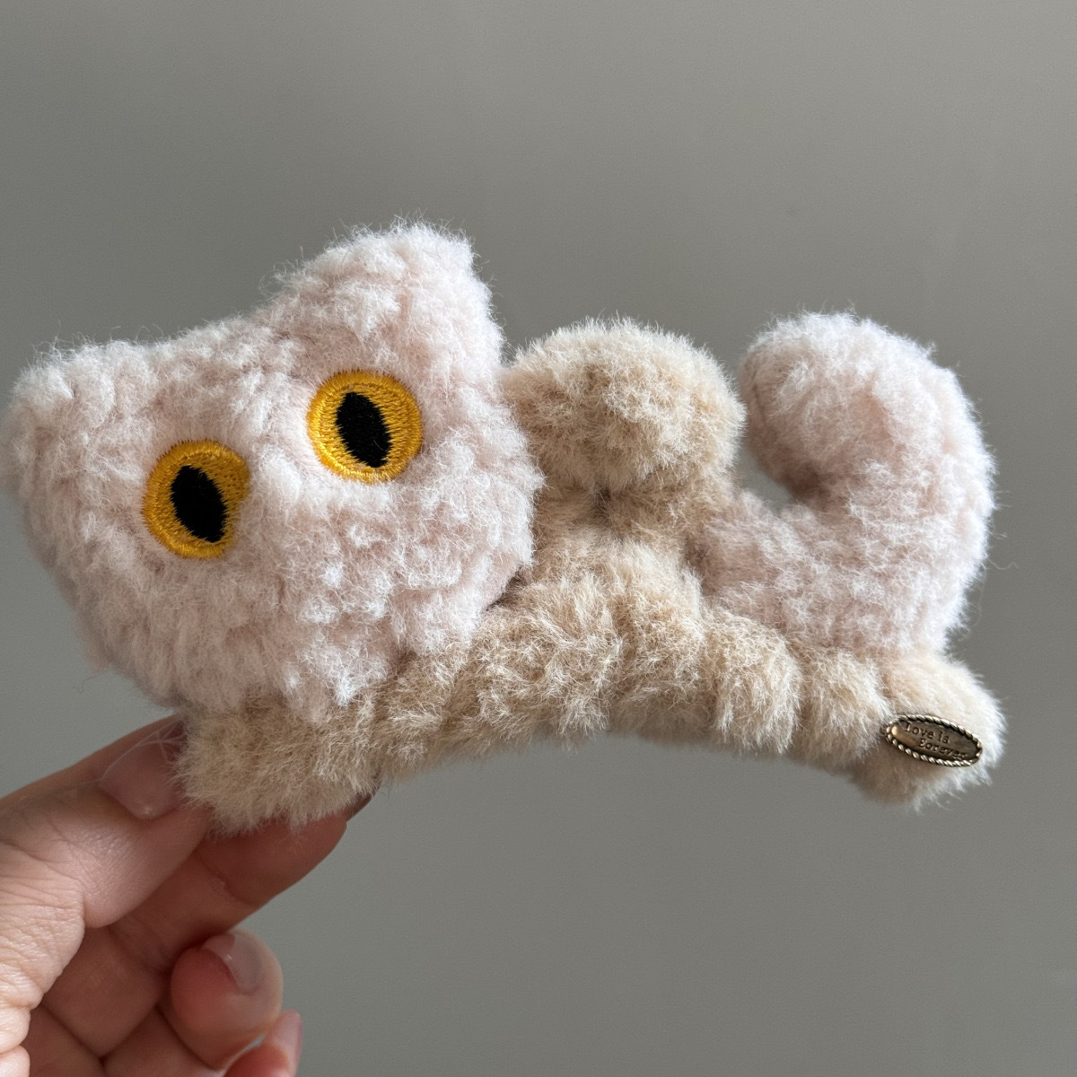 Заколка-крабик плюшевая "Котик с крыльями" бежевый