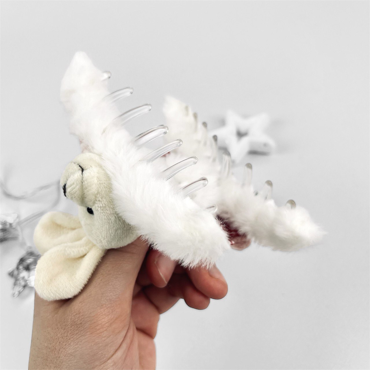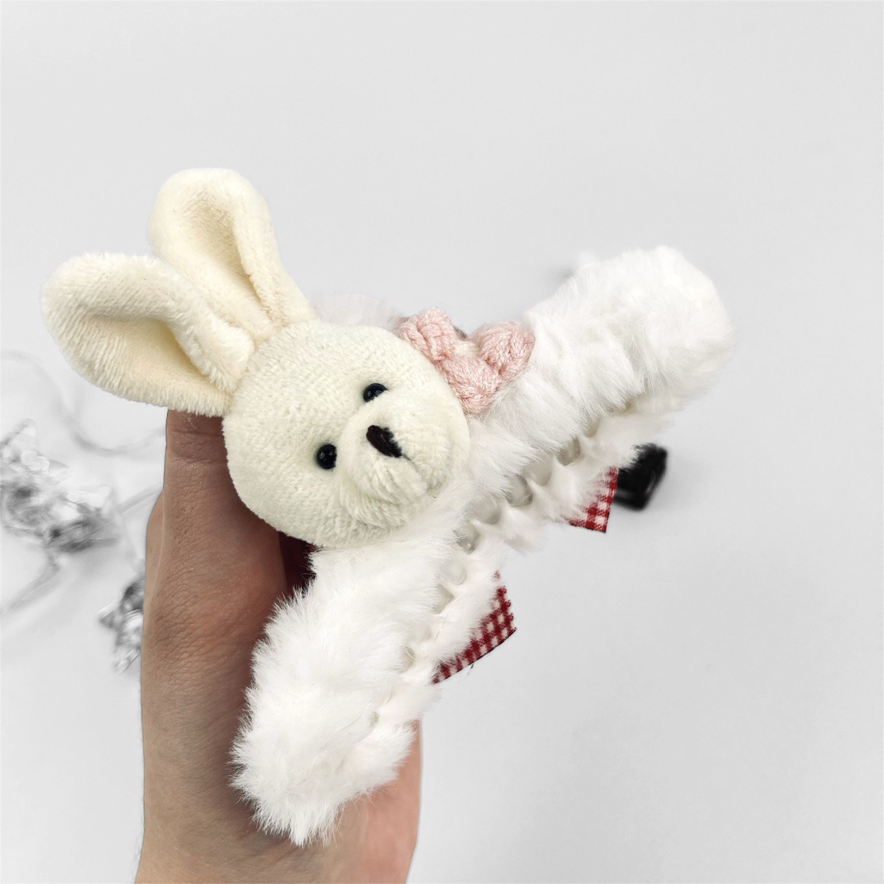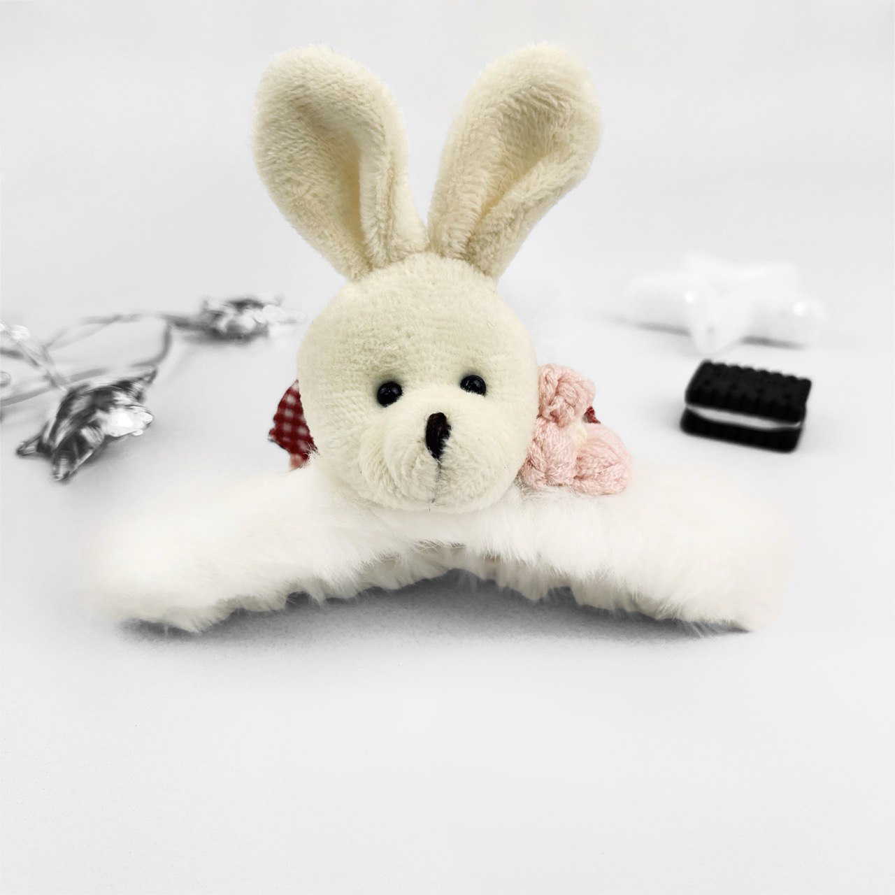 Заколка-крабик плюшевая "Зайка-Бантик" белый