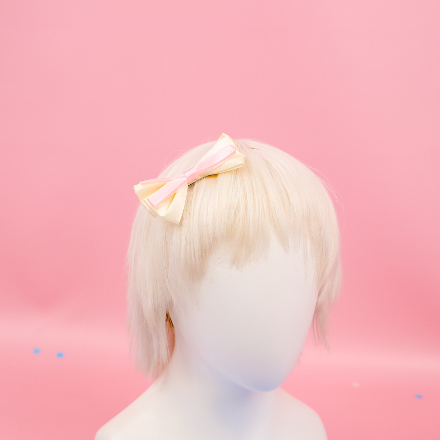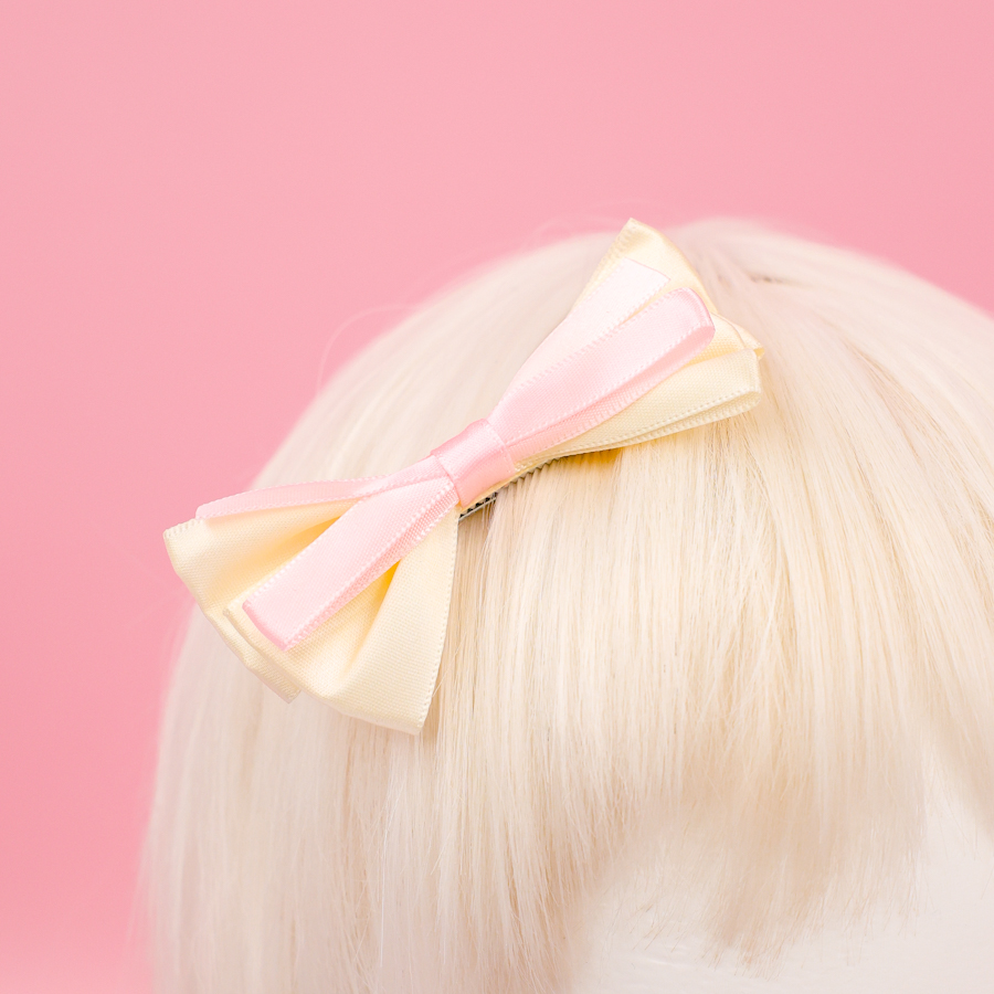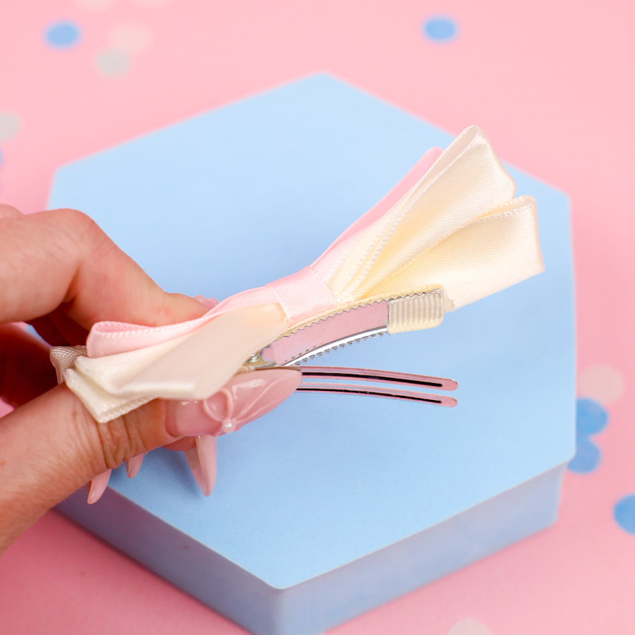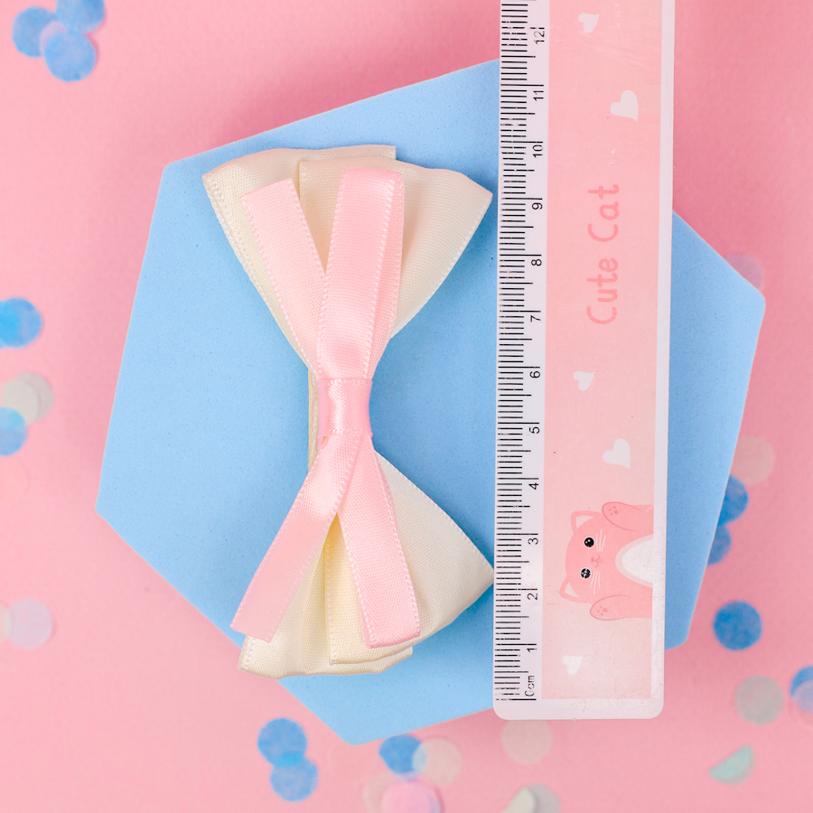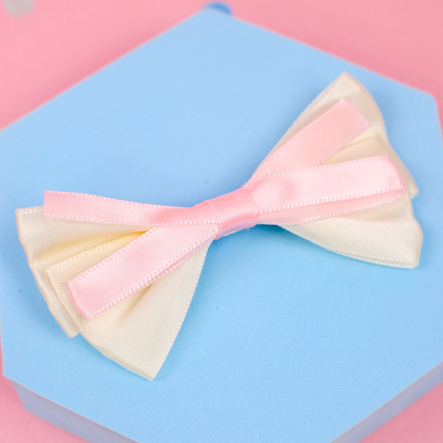 Заколка для волос "Бантик" Розовая лента, кремово-белый