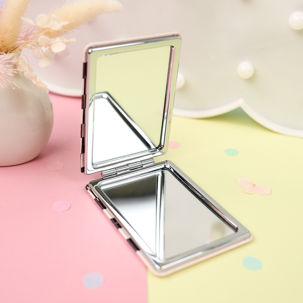 - Складное зеркало по форме и виду напоминает пудреницу. Для маленьких девочек аксессуар выполняется в подходящем по возрасту дизайну. Принты на корпусе в легком детском стиле со сказочной тематикой.