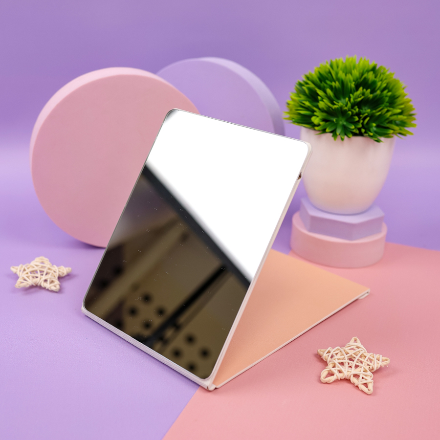 Зеркало настольное. Форму может иметь круглую, овальную, квадратную. Аксессуар обрамляется в красивую коробочку, украшенную стразами, интересными принтами. Благодаря небольшим размерам зеркальца легко помещаются в дамской сумочке или косметичке.