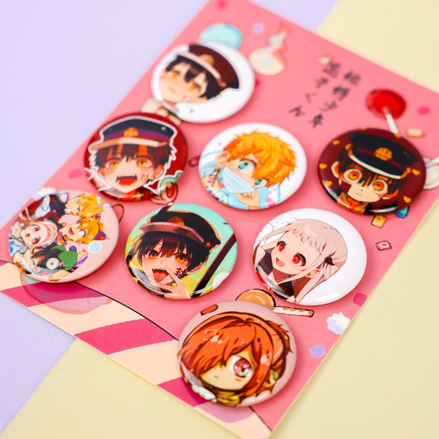 Набор круглых значков "Туалетный мальчик Ханако-кун" № 1, 32 мм (8шт)