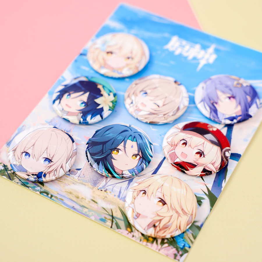 Набор круглых значков "Genshin Impact" № 1, 32 мм (8шт)