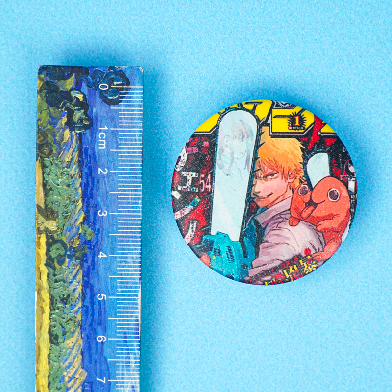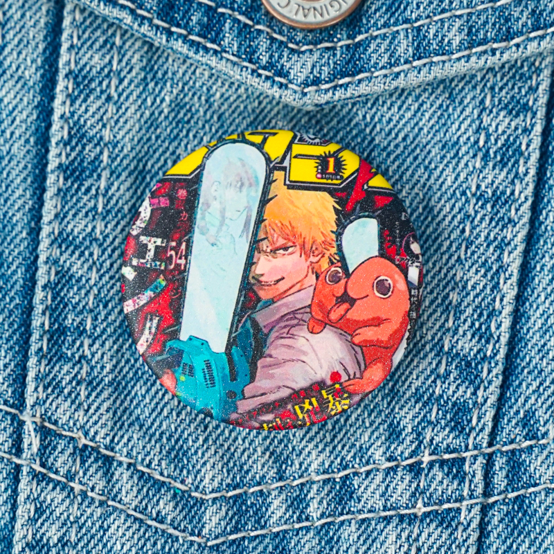 Значок круглый "Человек Бензопила" № 6, 44 мм
