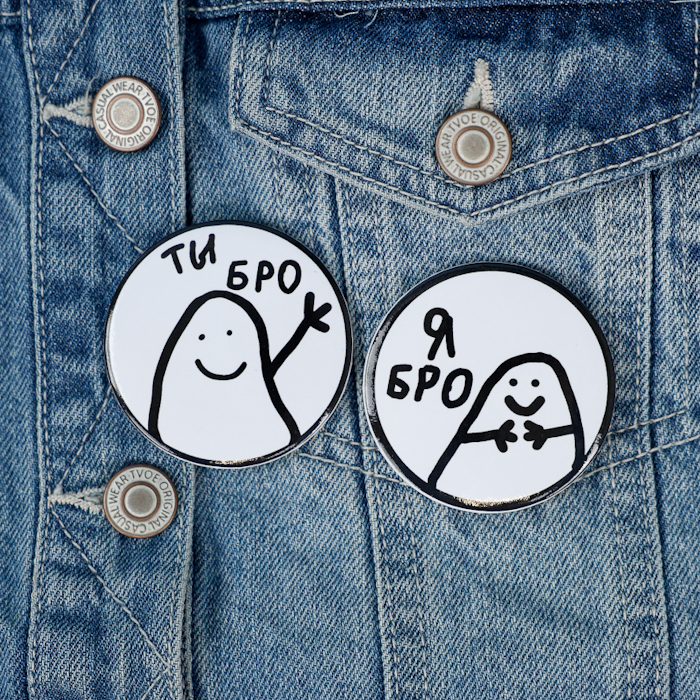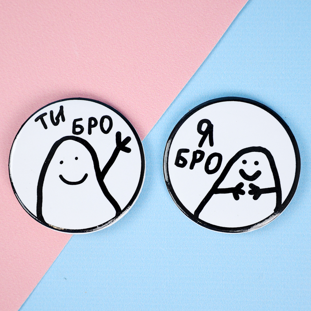 Значок круглый "Бро" парный, 56мм (2шт.)