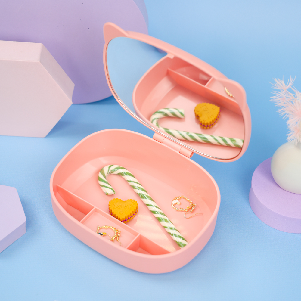 - Складное зеркало по форме и виду напоминает пудреницу. Для маленьких девочек аксессуар выполняется в подходящем по возрасту дизайну. Принты на корпусе в легком детском стиле со сказочной тематикой.
