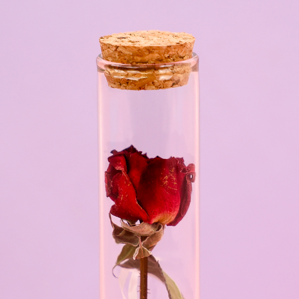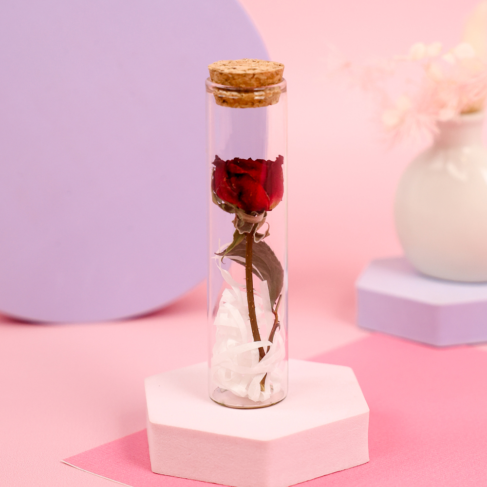 Цветок в пробирке "Роза" 12 см, красный