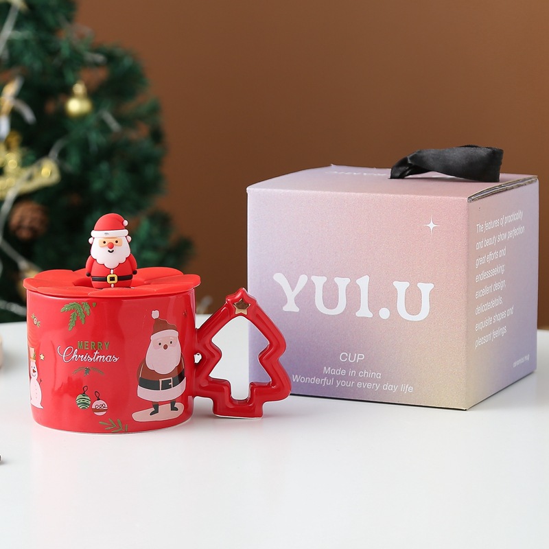 Кружка с крышкой "НГ Merry Christmas" 400мл, Санта, красный