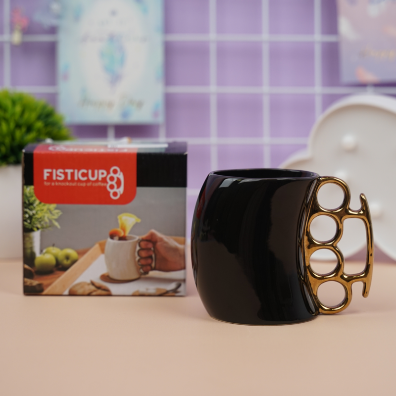 Керамическая кружка "Кастет" черная с золотистой ручкой, 400 мл