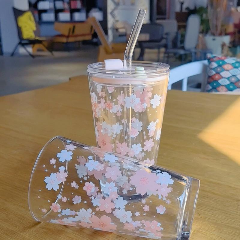 Стакан "Цветы сакуры" с трубочкой, 450мл
