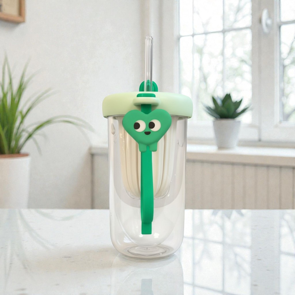 Стакан "Сердце с глазками" зеленый, с трубочкой 500мл
