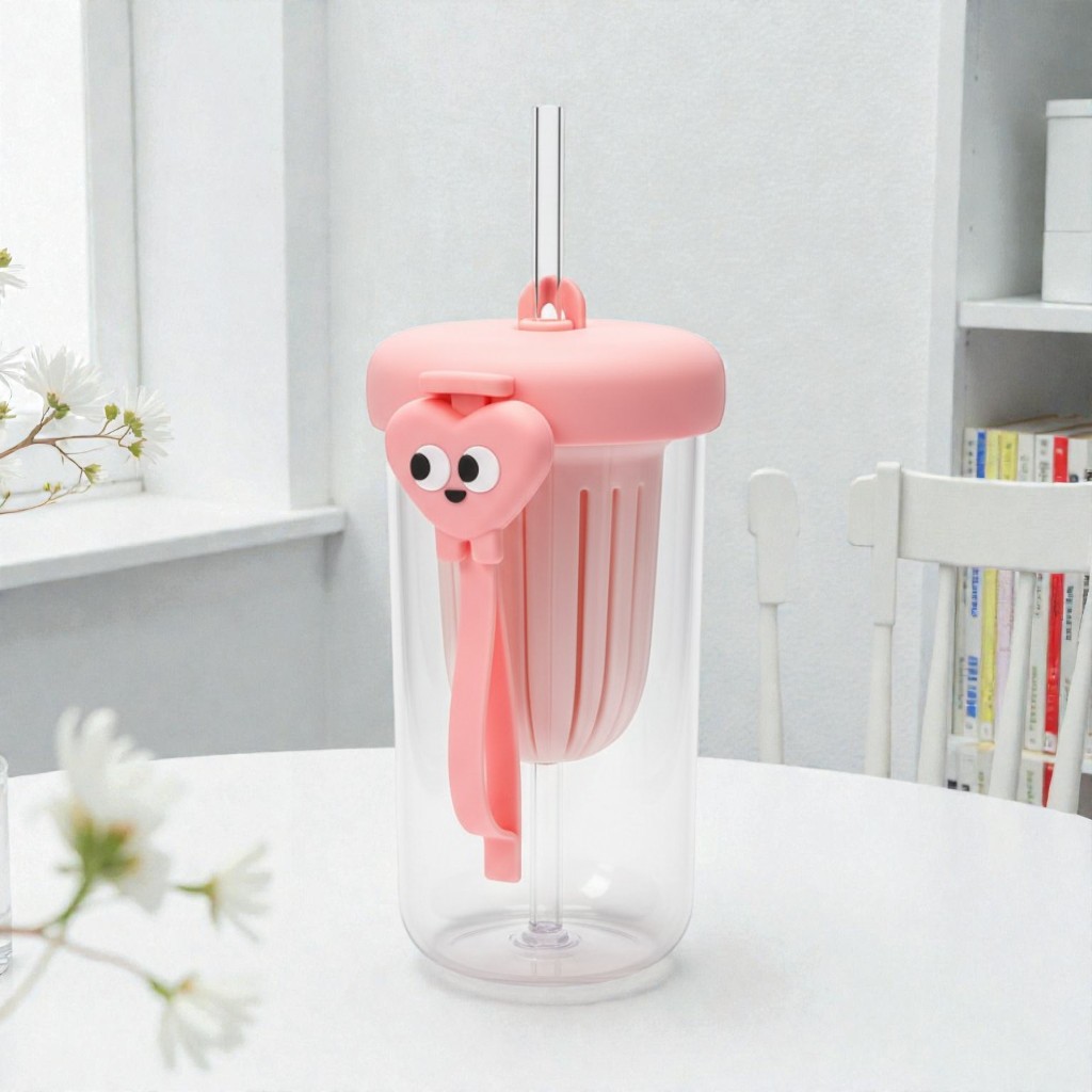 Стакан "Сердце с глазками" розовый, с трубочкой 500мл