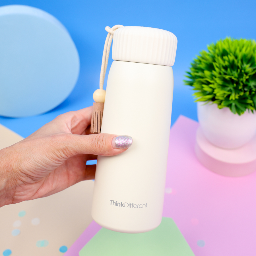 Термос "Think Different" с кисточкой, бежевый, 400мл