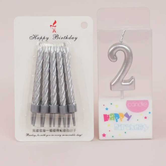 Комплект свечей №9 цифра -2-(серебр) + 1 упаковка серебристых свечек