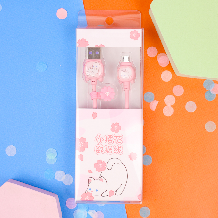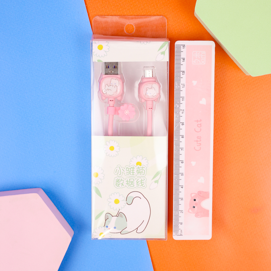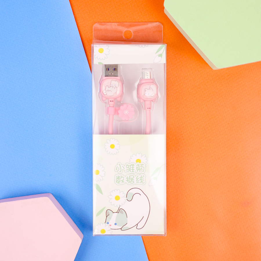Кабель зарядка "Котик" розовый (USB micro)