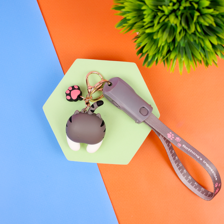 Кабель зарядка "Humor Cat" серый 3в1 (USB Type-C, Lightning)