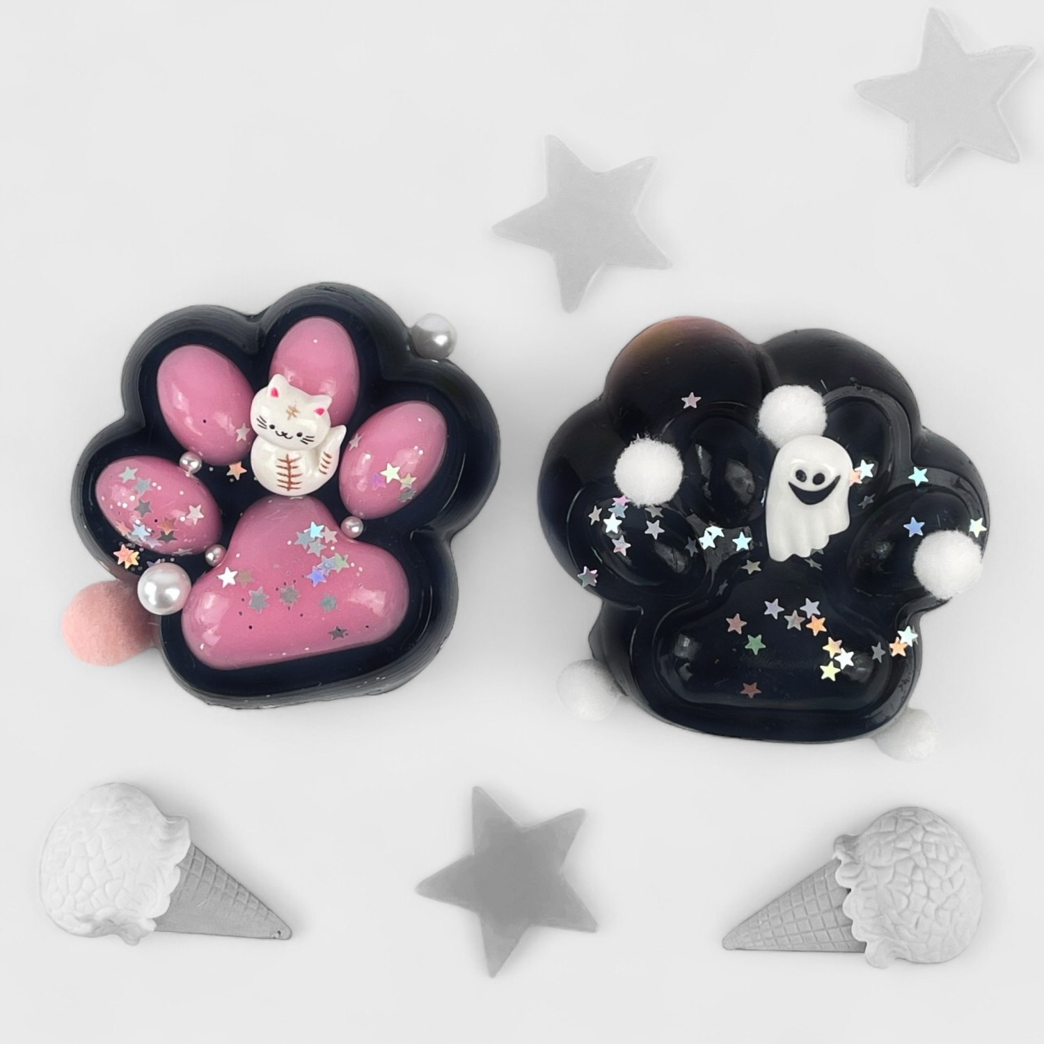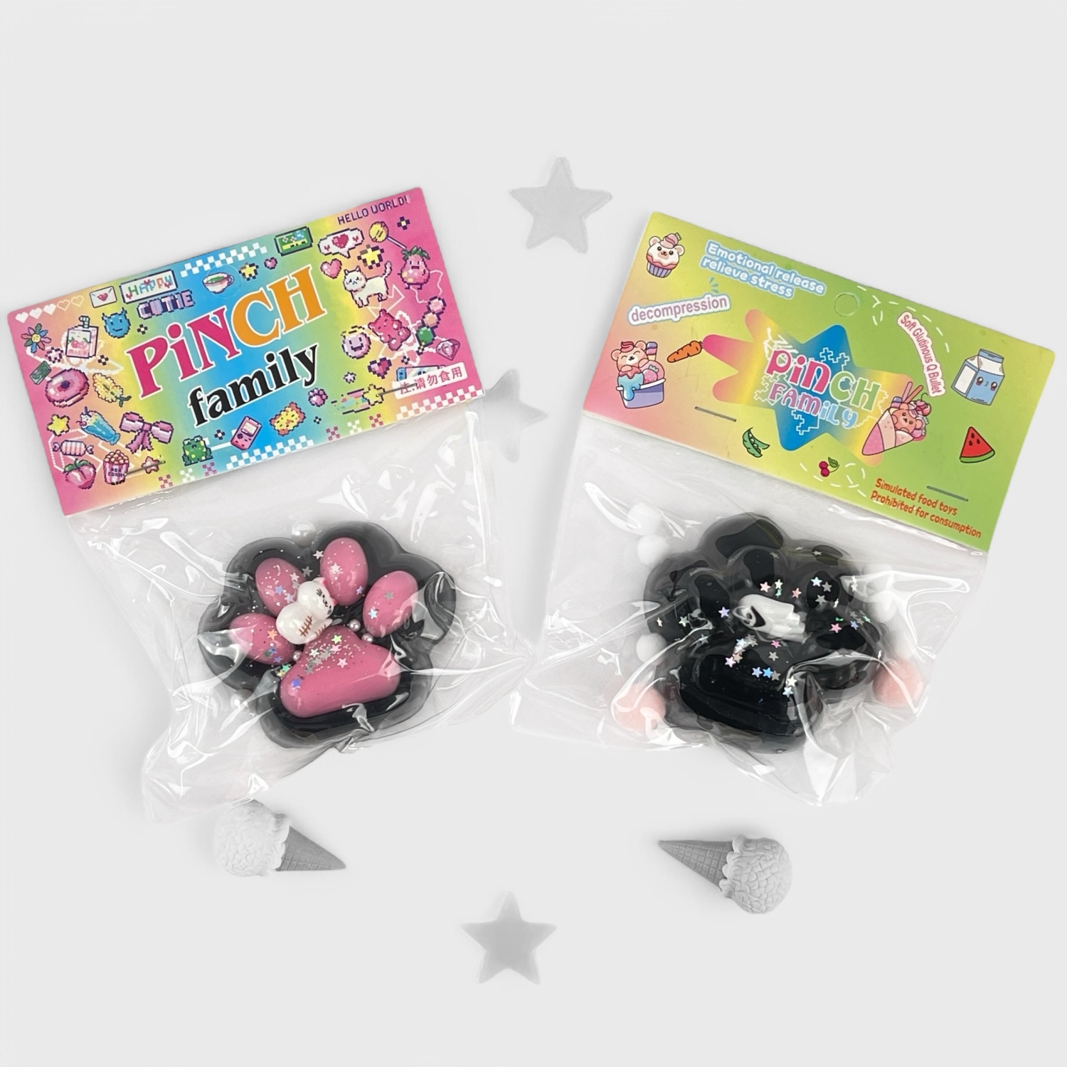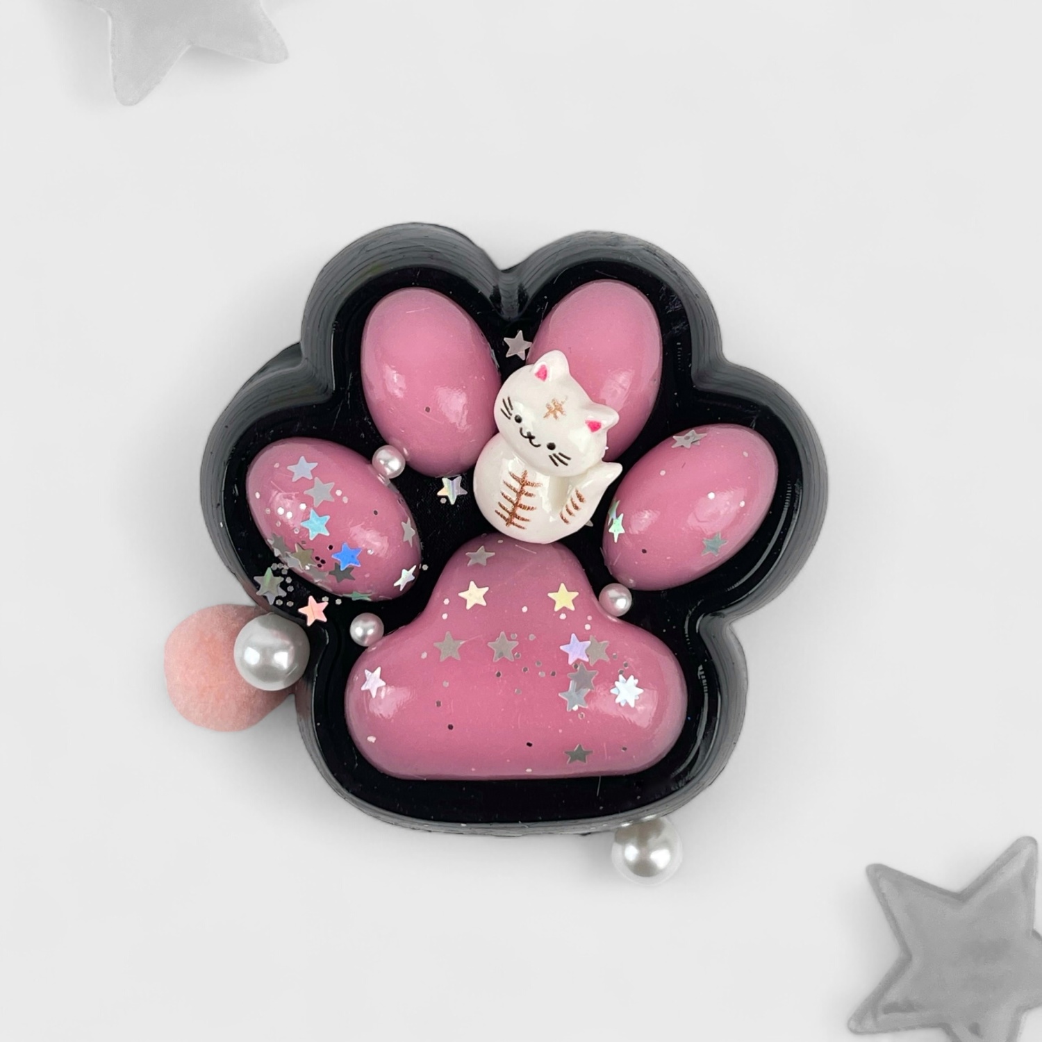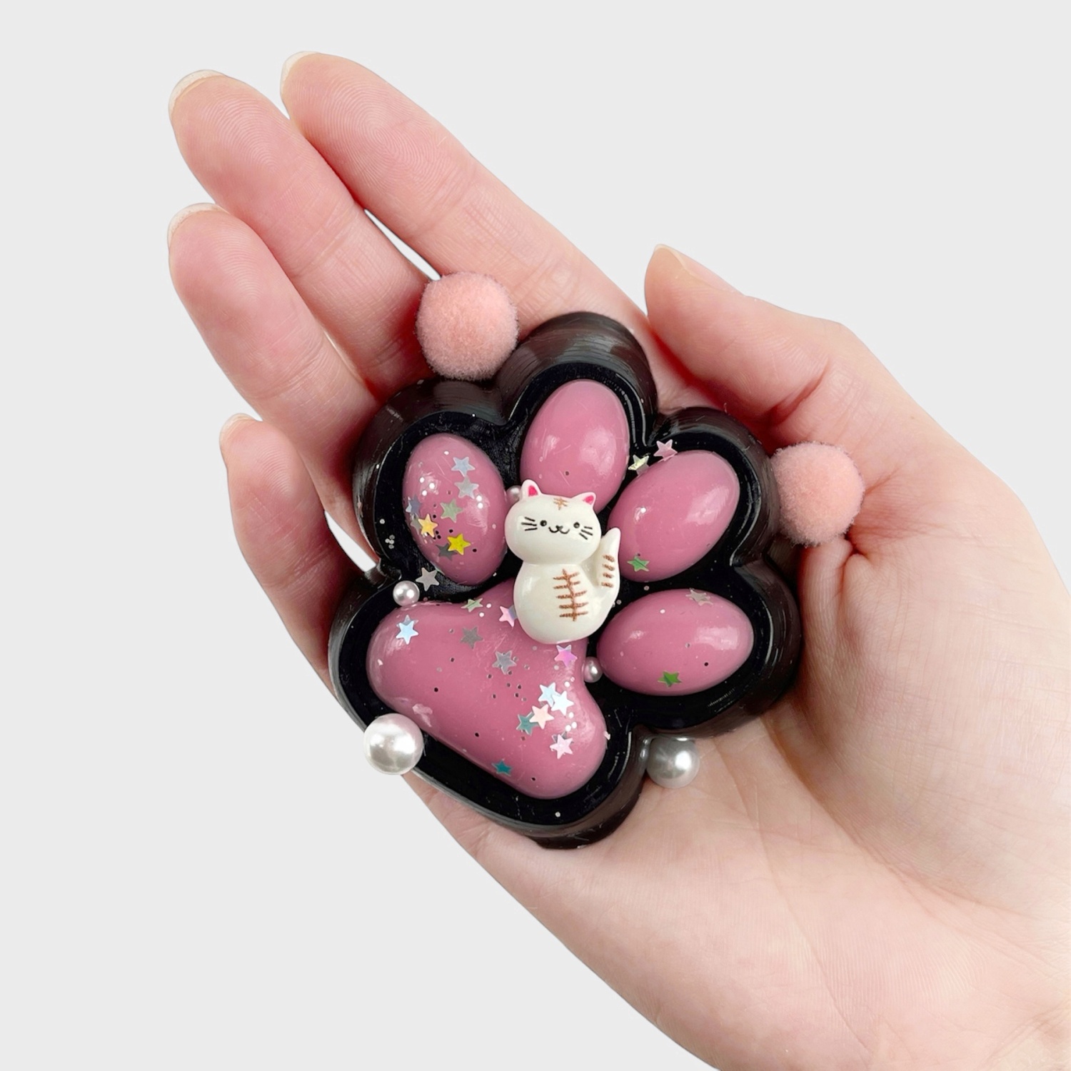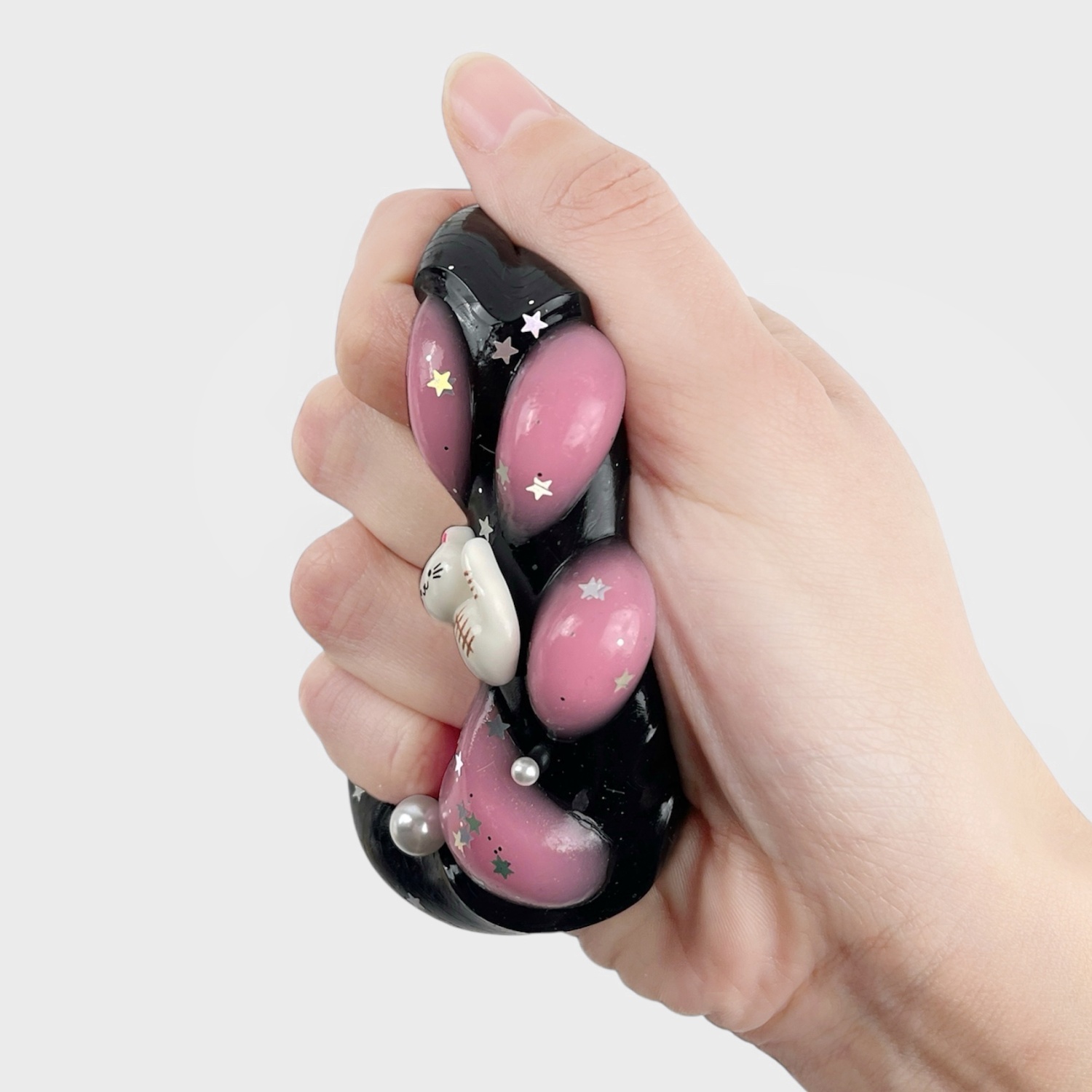 Антистресс "Лапка" с кошечкой, черно-розовый