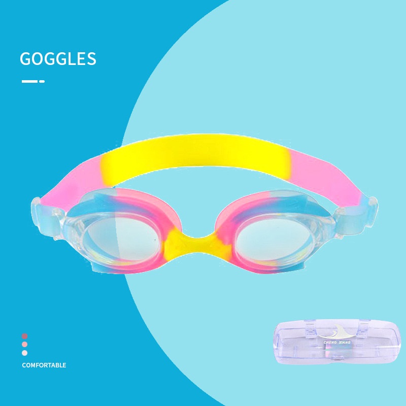 Очки для плавания "Colors" с чехлом, розовый, желтый, голубой