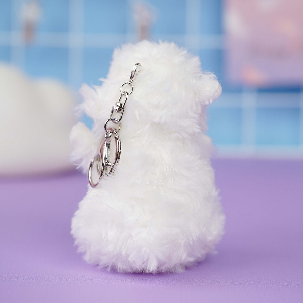 Игрушки на брелоках изготовлены из качественного плюша, искусственного меха и гипоаллергенного синтепона. Теплые необычные подвески приятны на ощупь. Во время машинной стирки не линяют, не теряют форму.