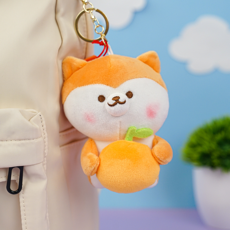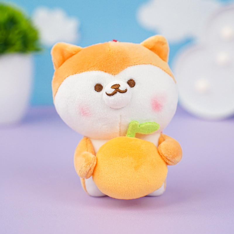 Мягкий брелок "Сиба-ину" с мандарином 12 см