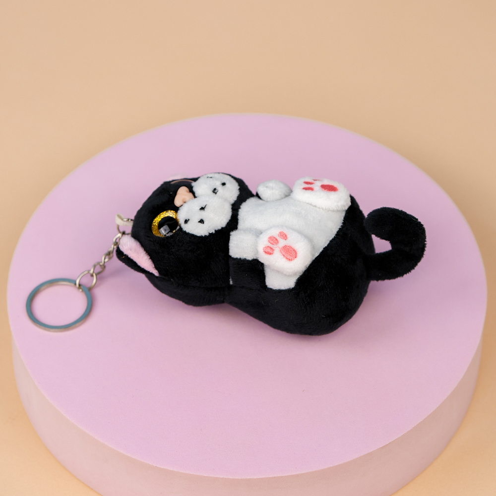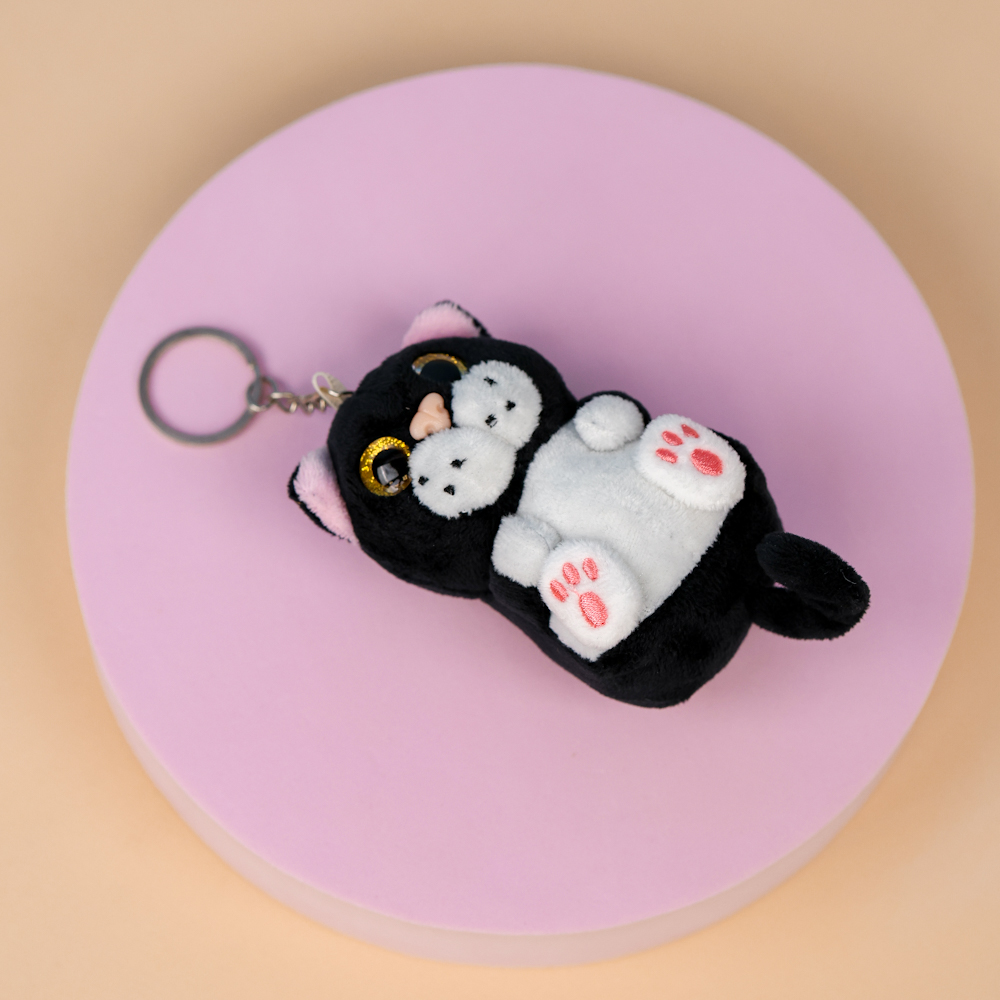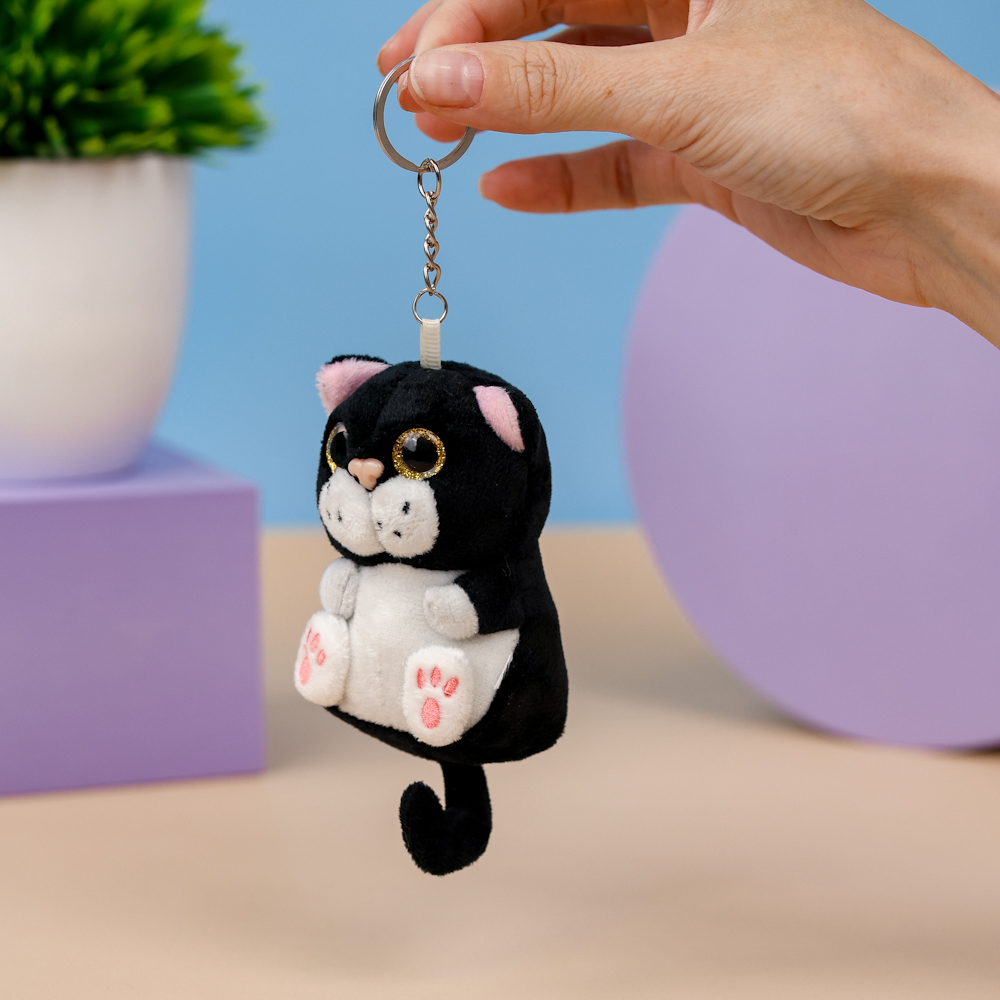 Брелок мягкий котик "Большие глазки" черный 12 см