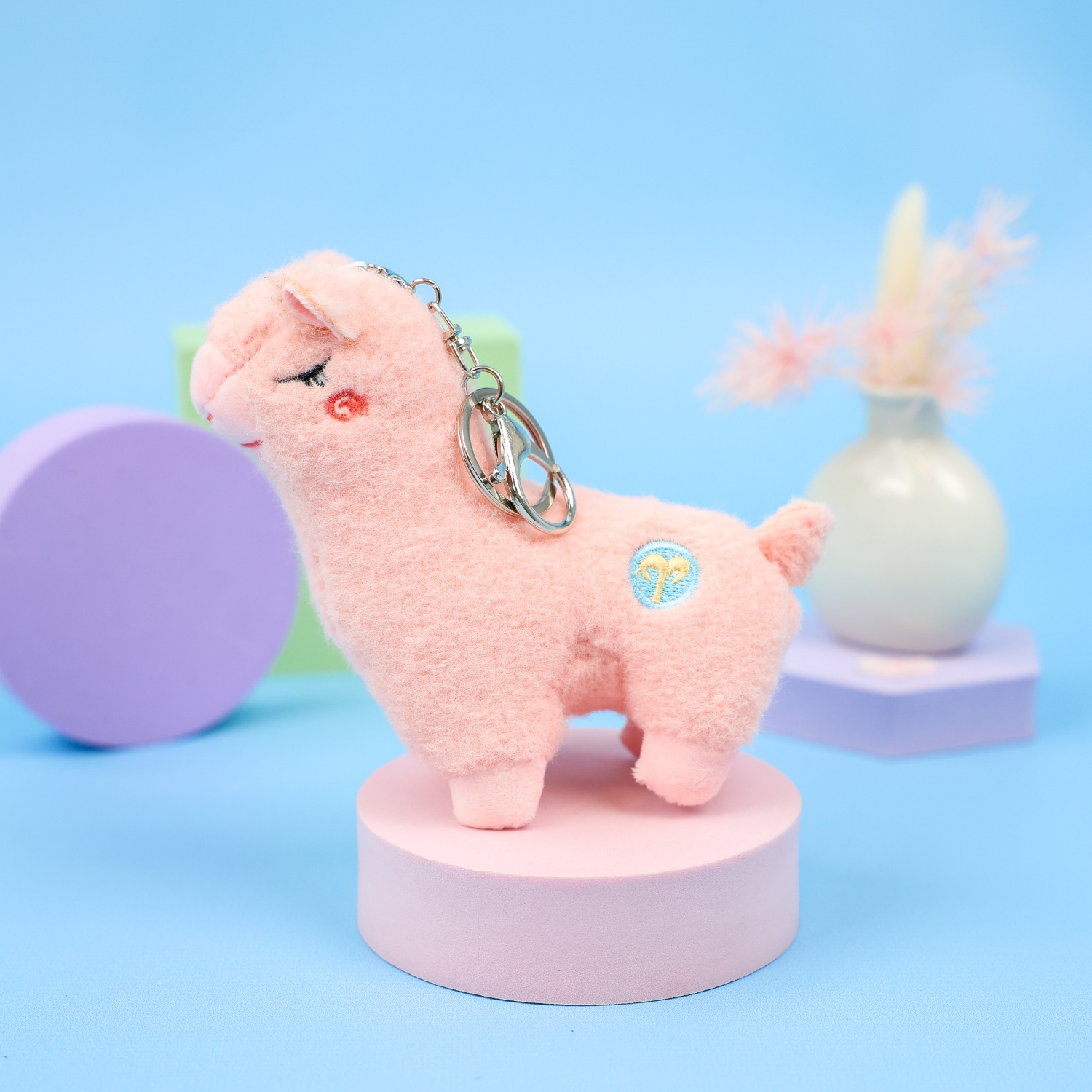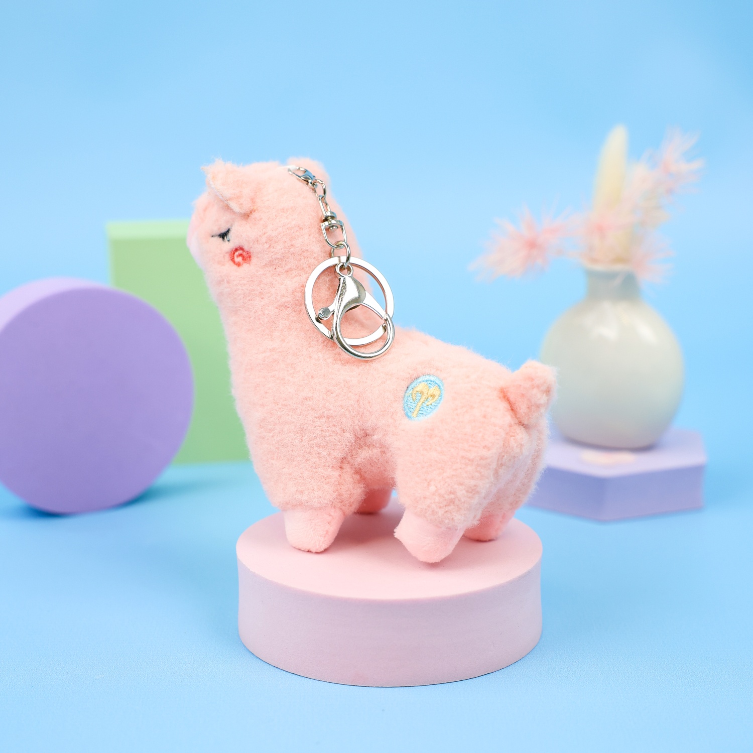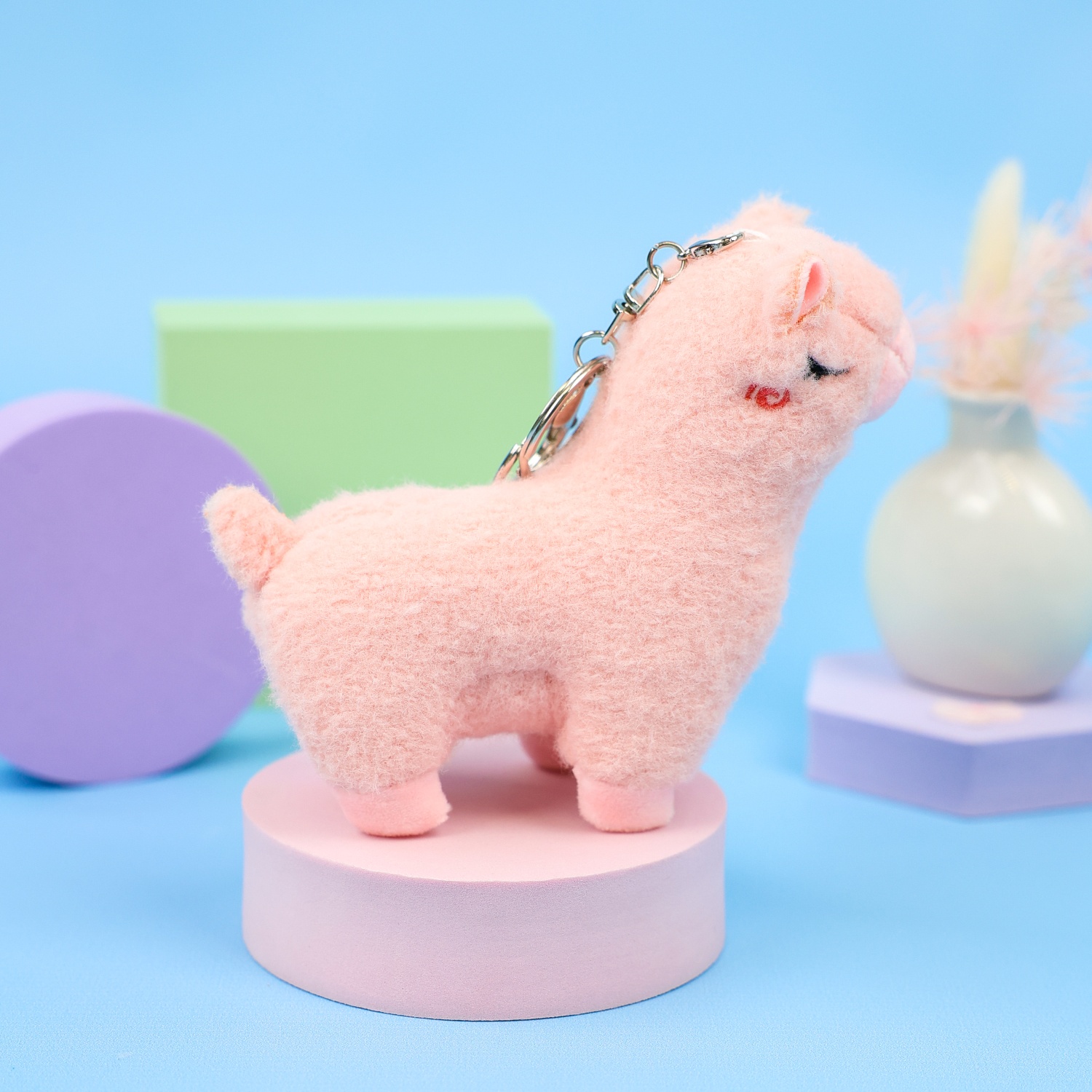 Мягкий брелок "Лама" розовый 12 см