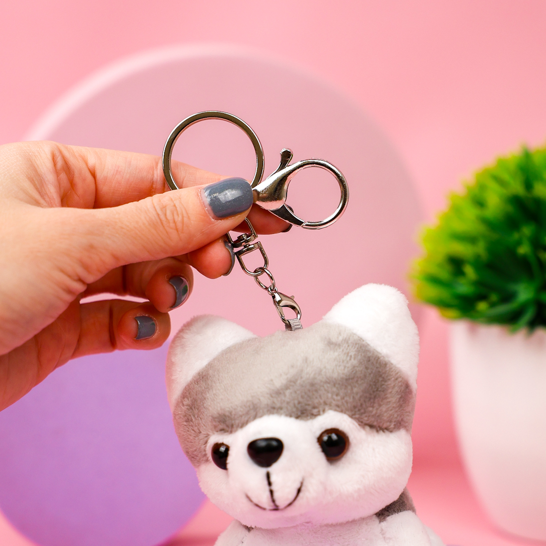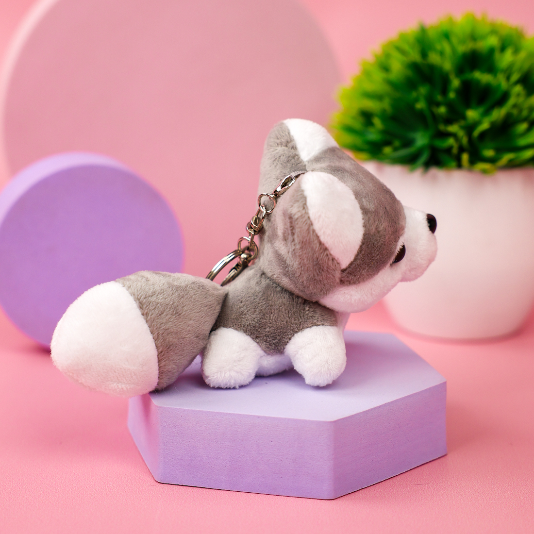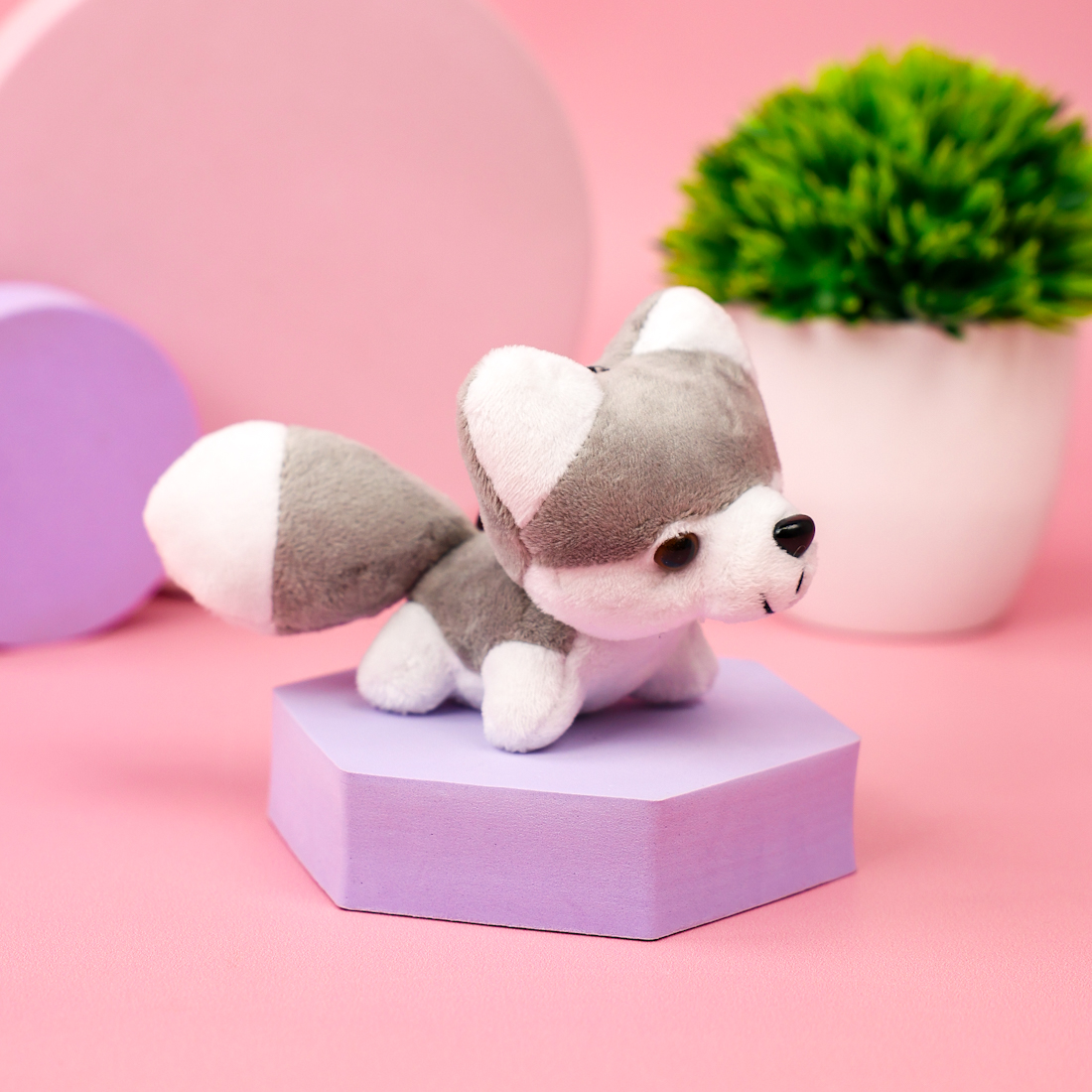 Мягкий брелок "Хаски" серый 10 см