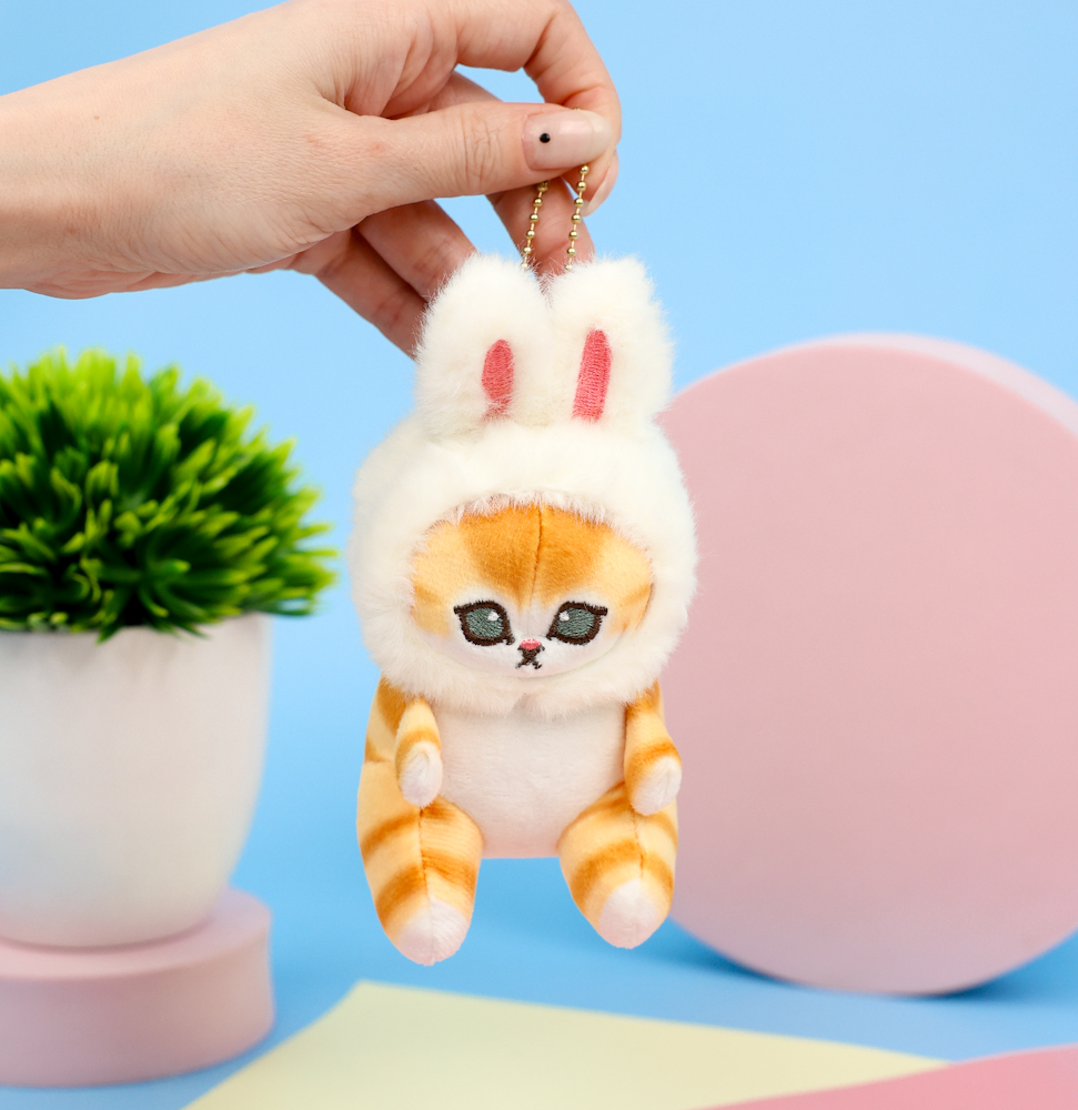 Мягкий брелок "Кото-кролик" бело-рыжий, 12 см
