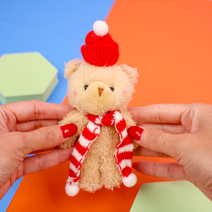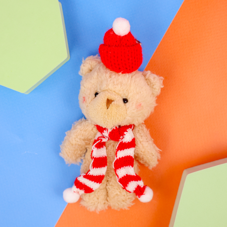 Мягкий брелок "Мишка в шапочке" бежевый